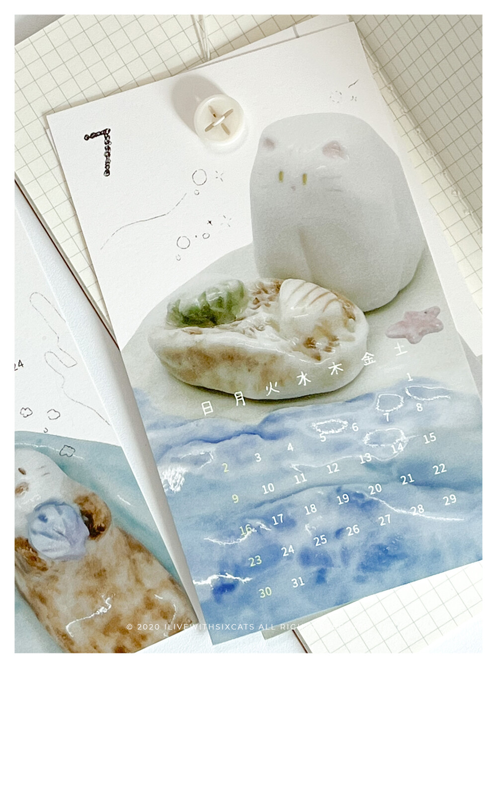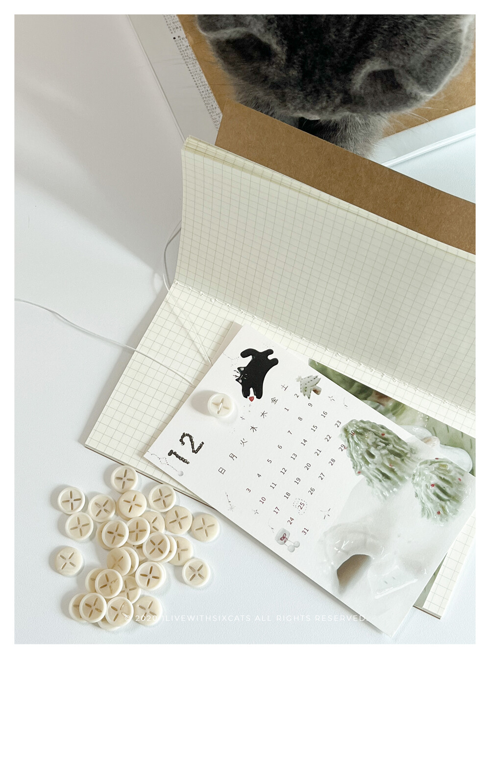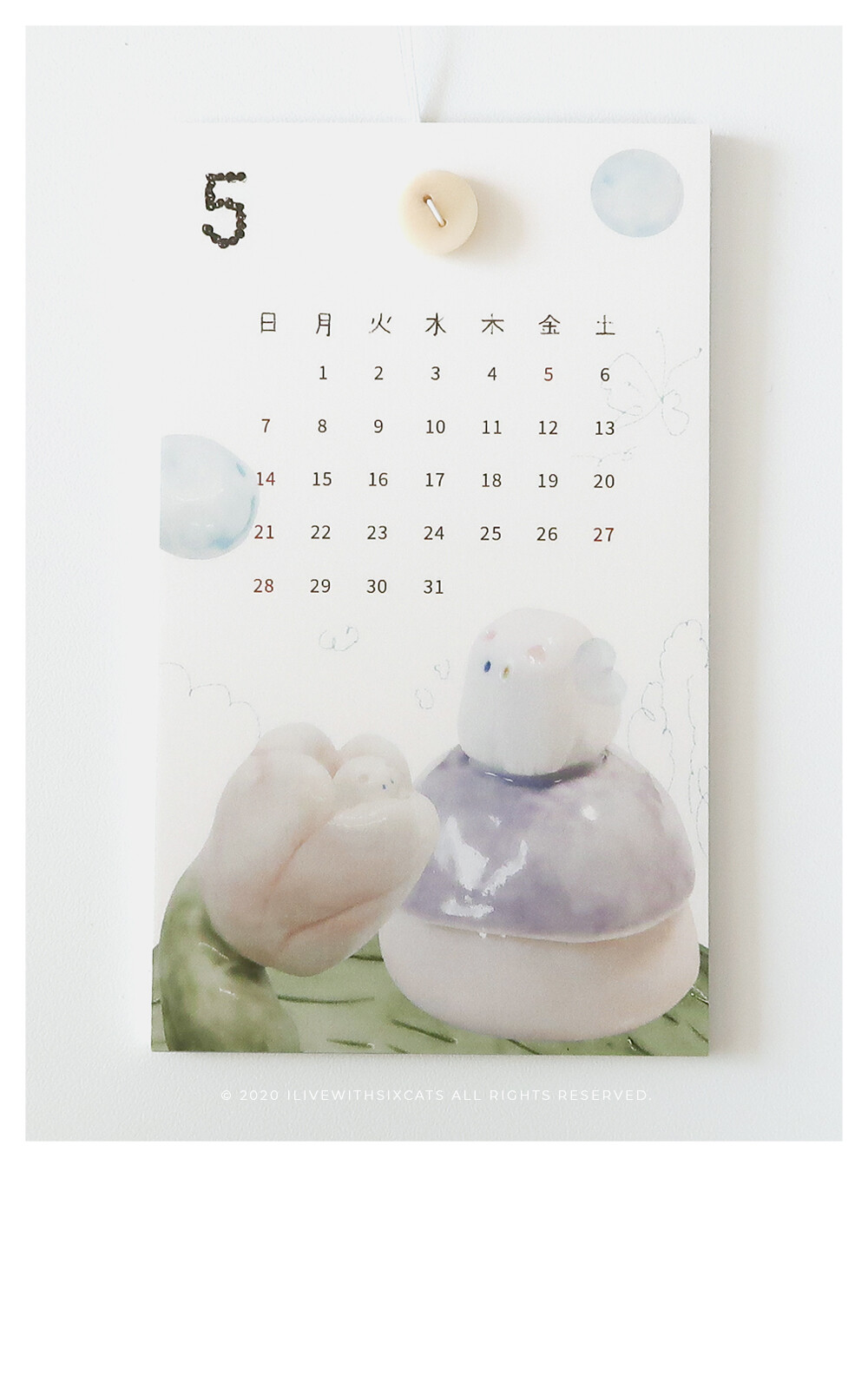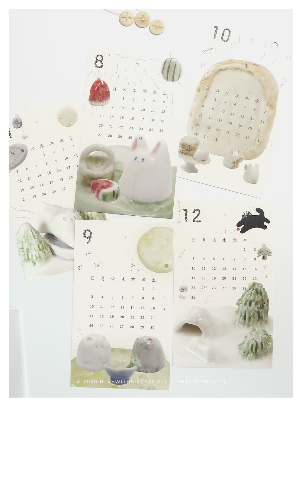 2023 버전으로 돌아온 버튼 카렌다입니다. i live with six cats의 주간 도자기들을 모아서 재구성한 이미지들로 만들었어요.
