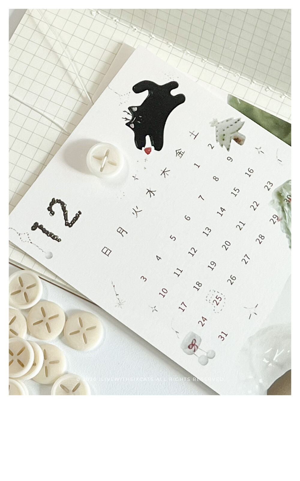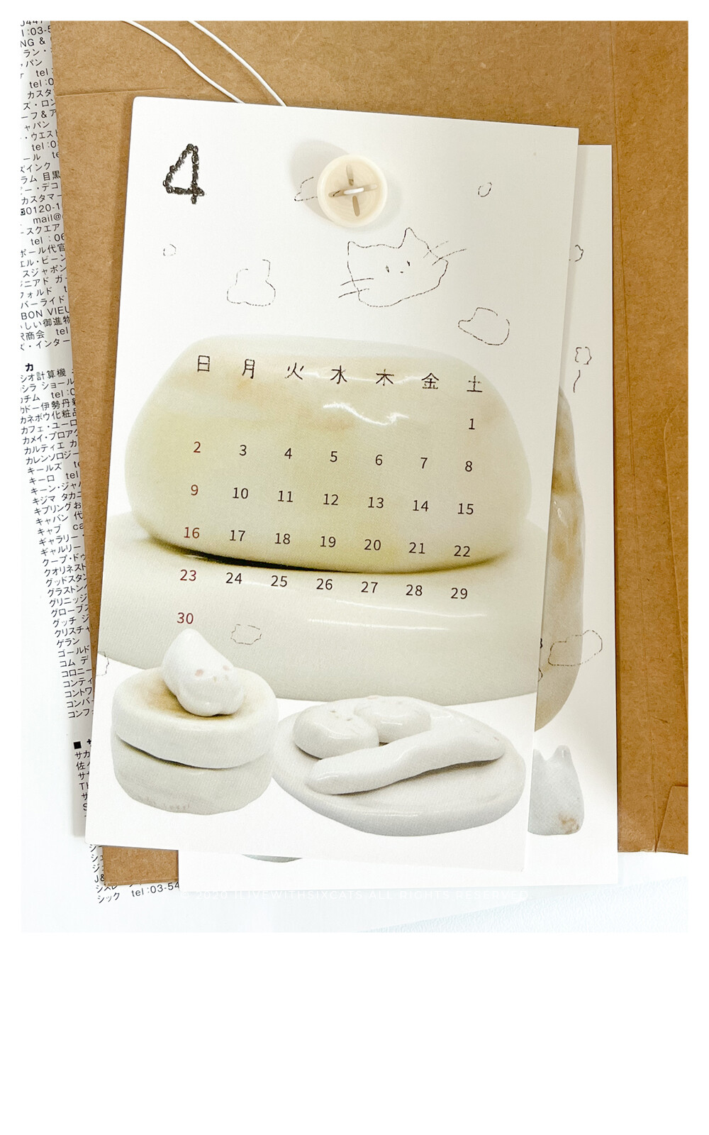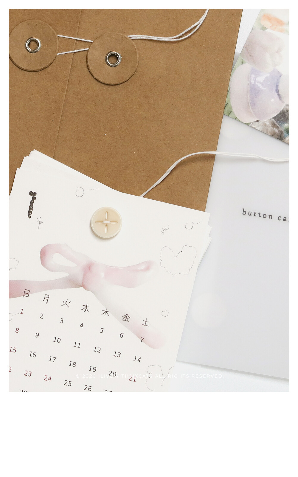 ⁞ 달력 12장, 엽서(표지), 단추, 끈, 봉투