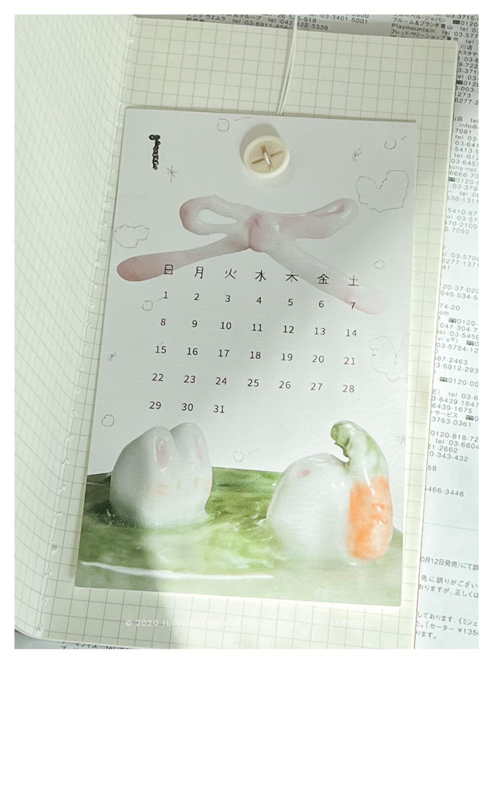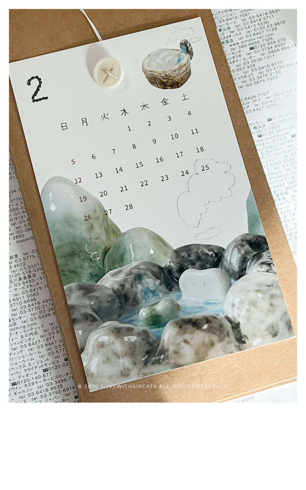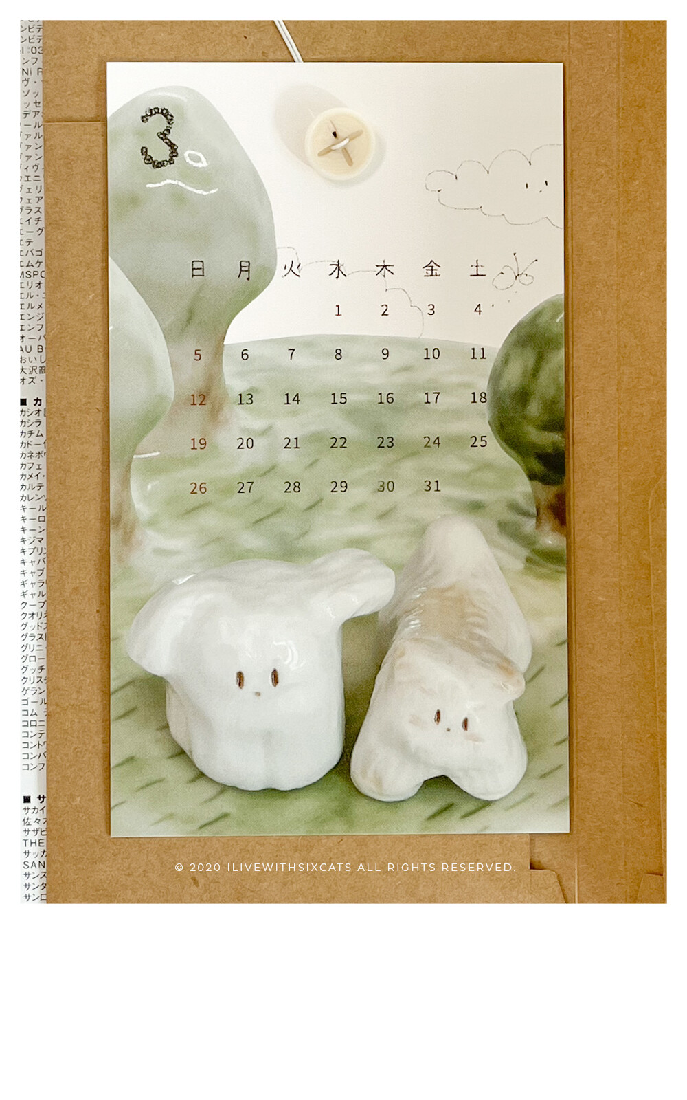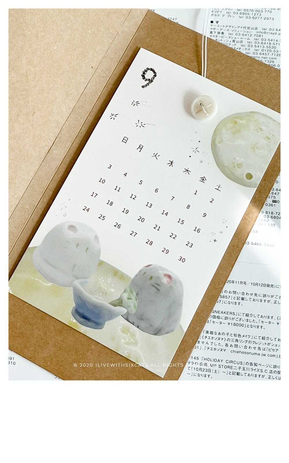 ⁞ 달력 12장, 엽서(표지), 단추, 끈, 봉투