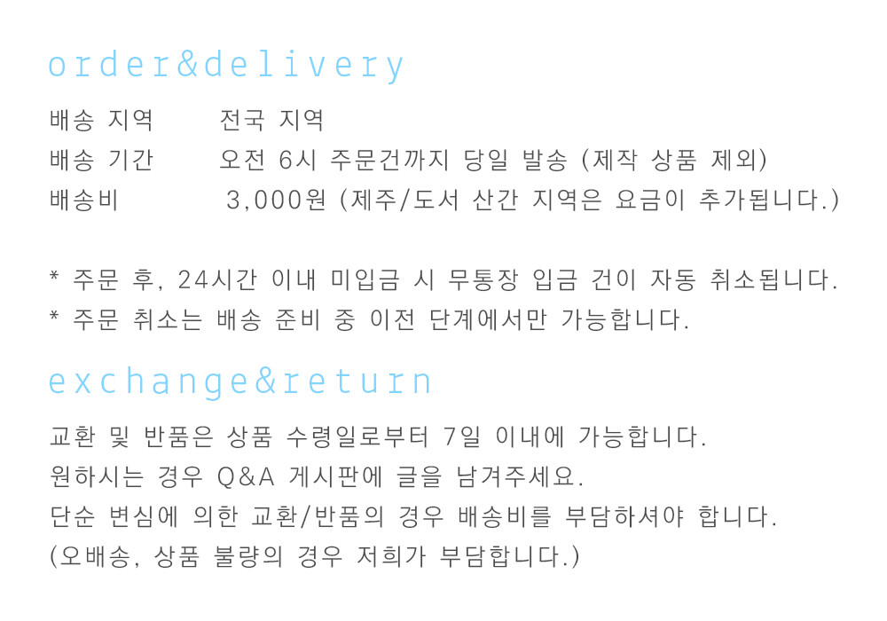 설연휴 기간 물량 증가로 인해 주문제작 및 출고까지 걸리는 시간이 평소보다 조금 더 소요될 수 있습니다!