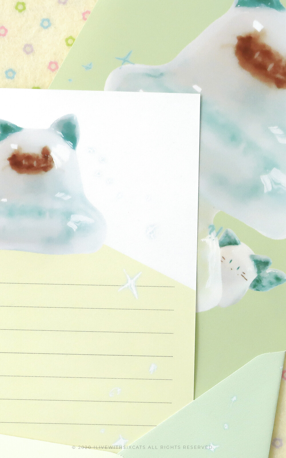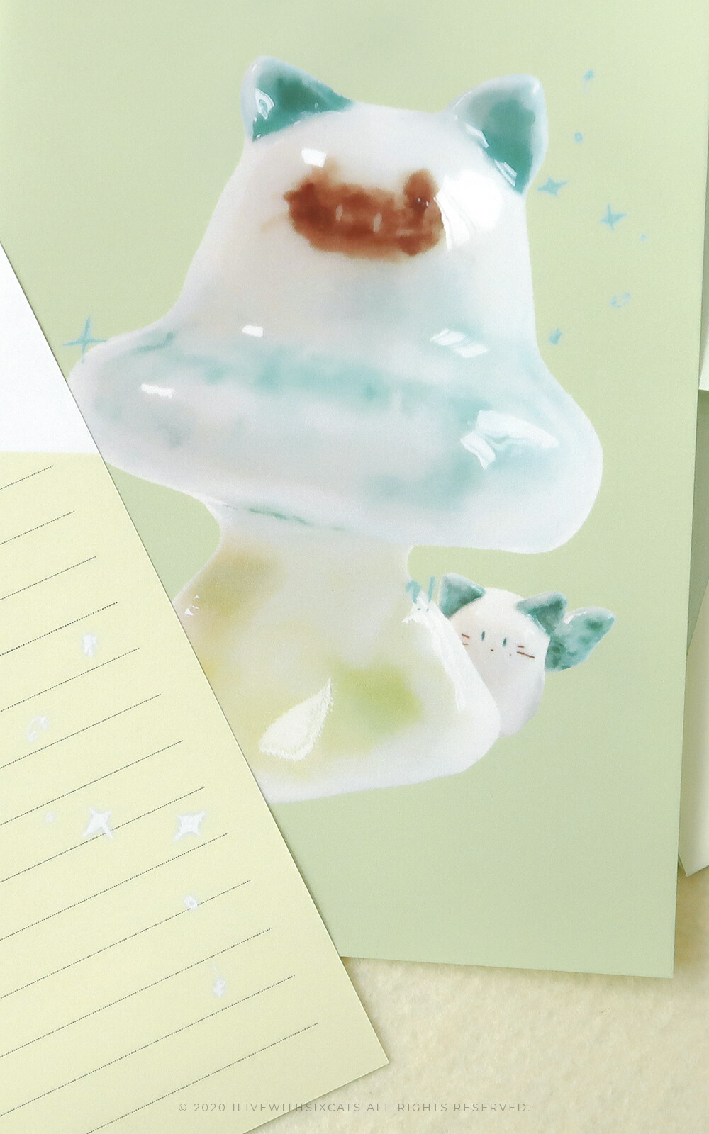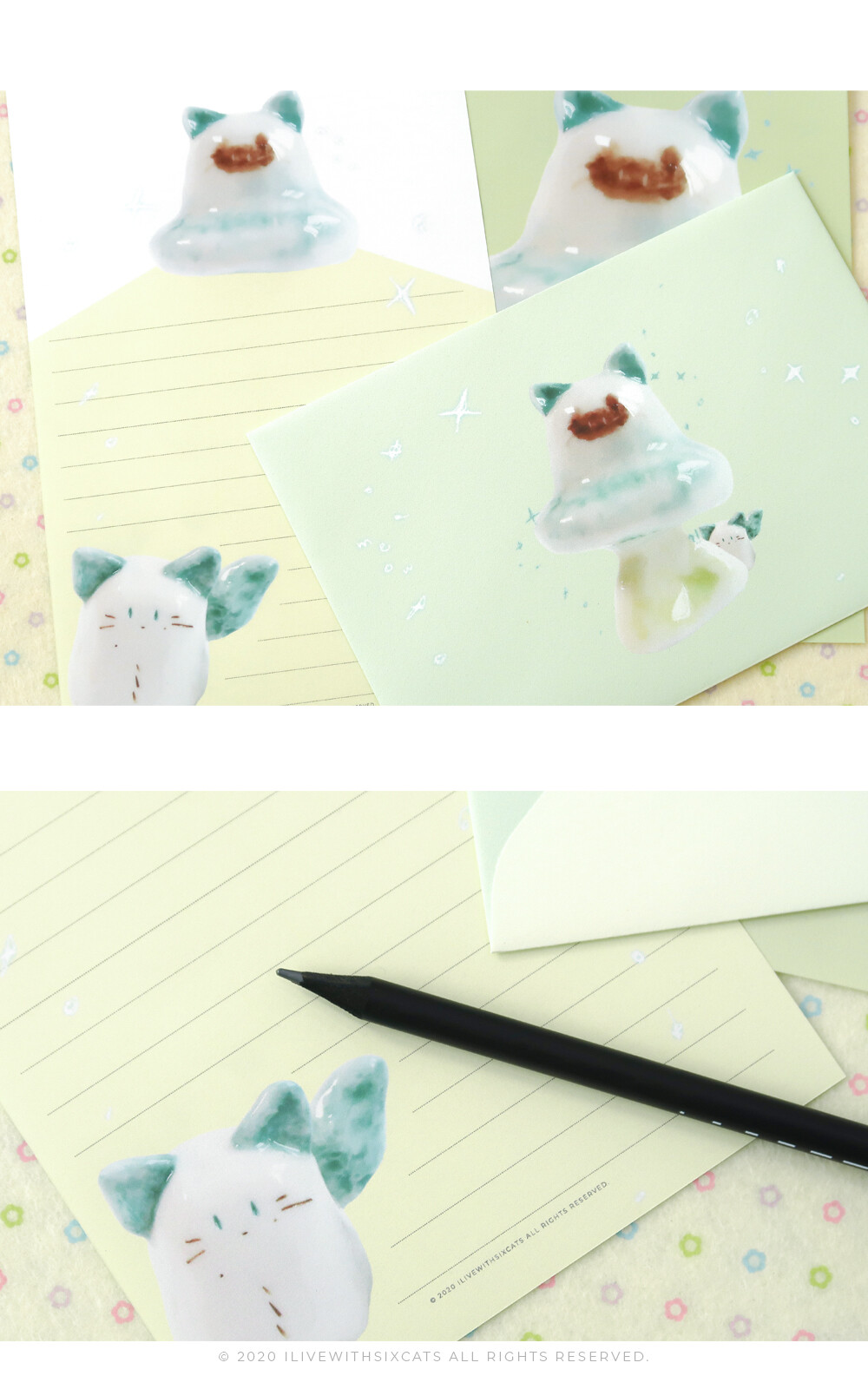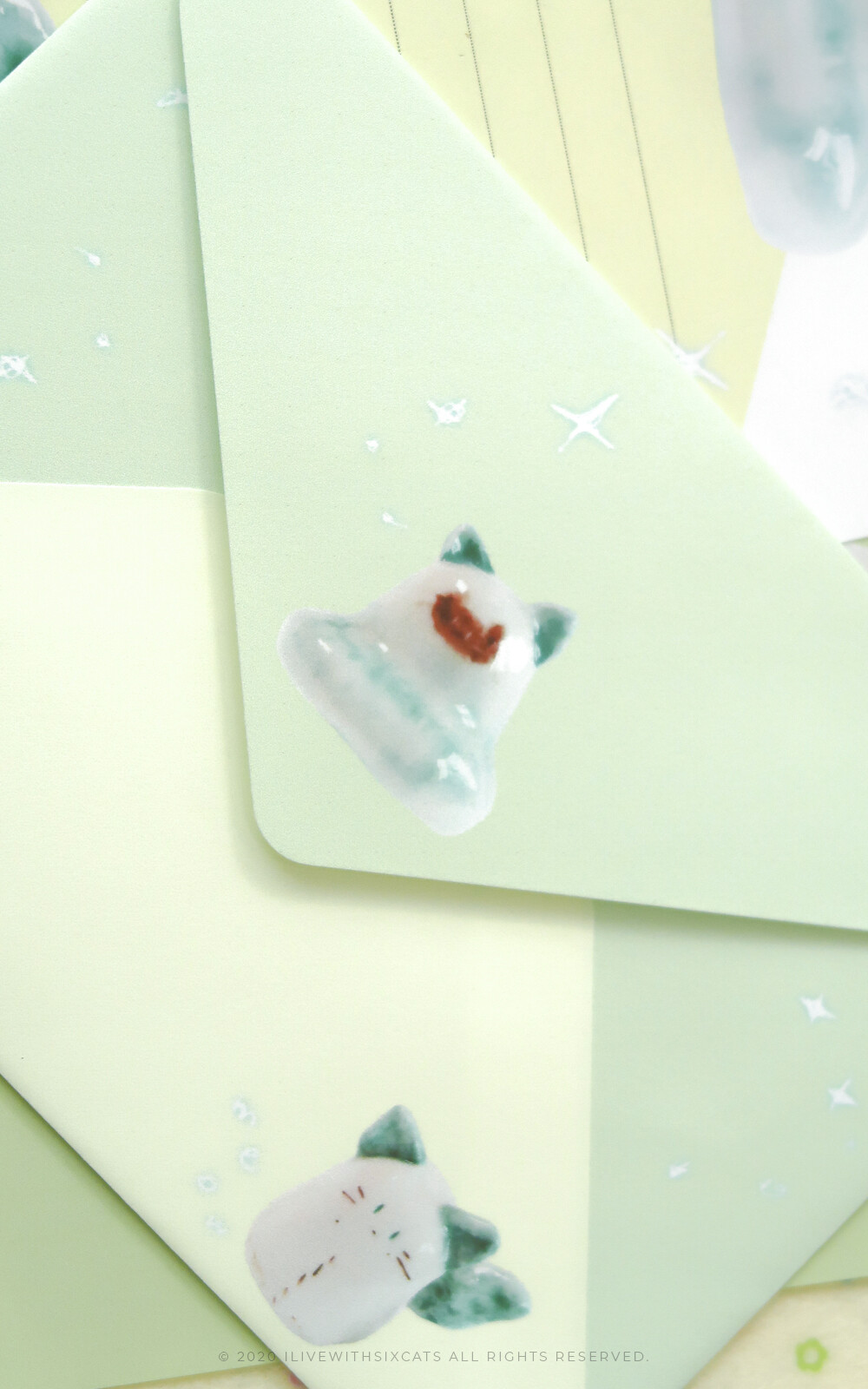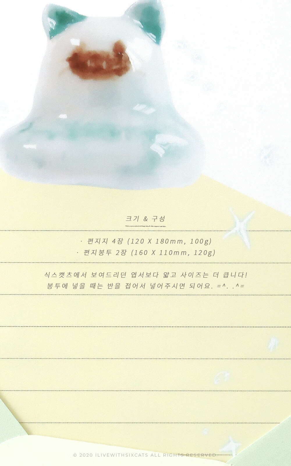 식스캣츠에서 보여드리던 엽서보다 얇고 사이즈는 더 큽니다! 봉투에 넣을 때는 반을 접어서 넣어주시면 되어요. =^. .^=