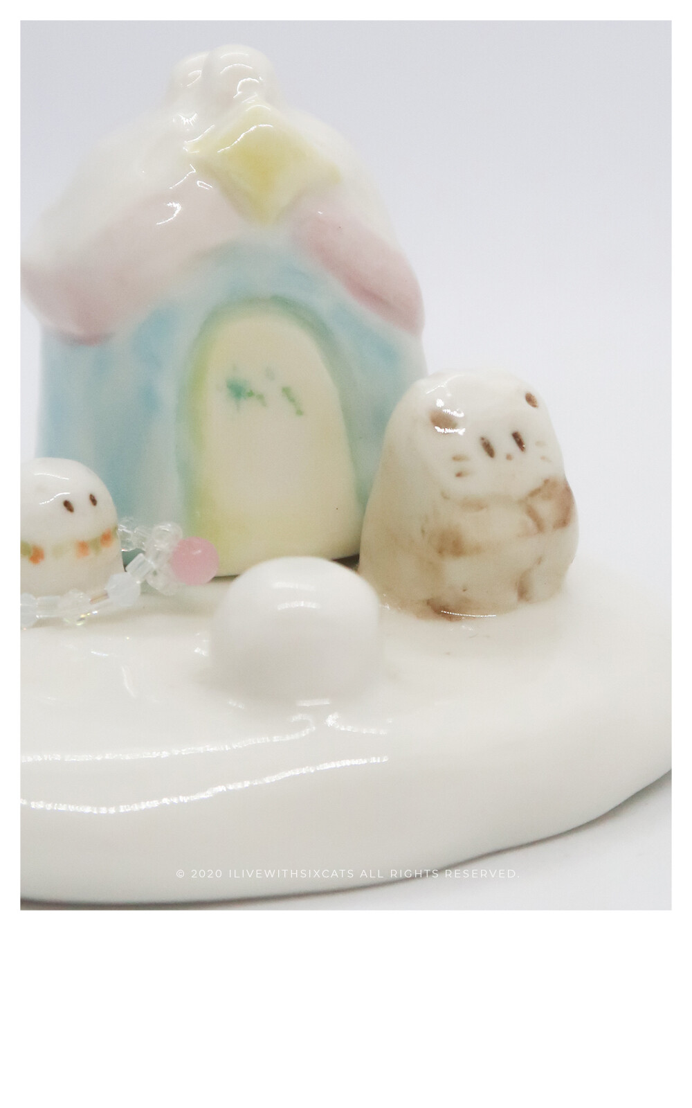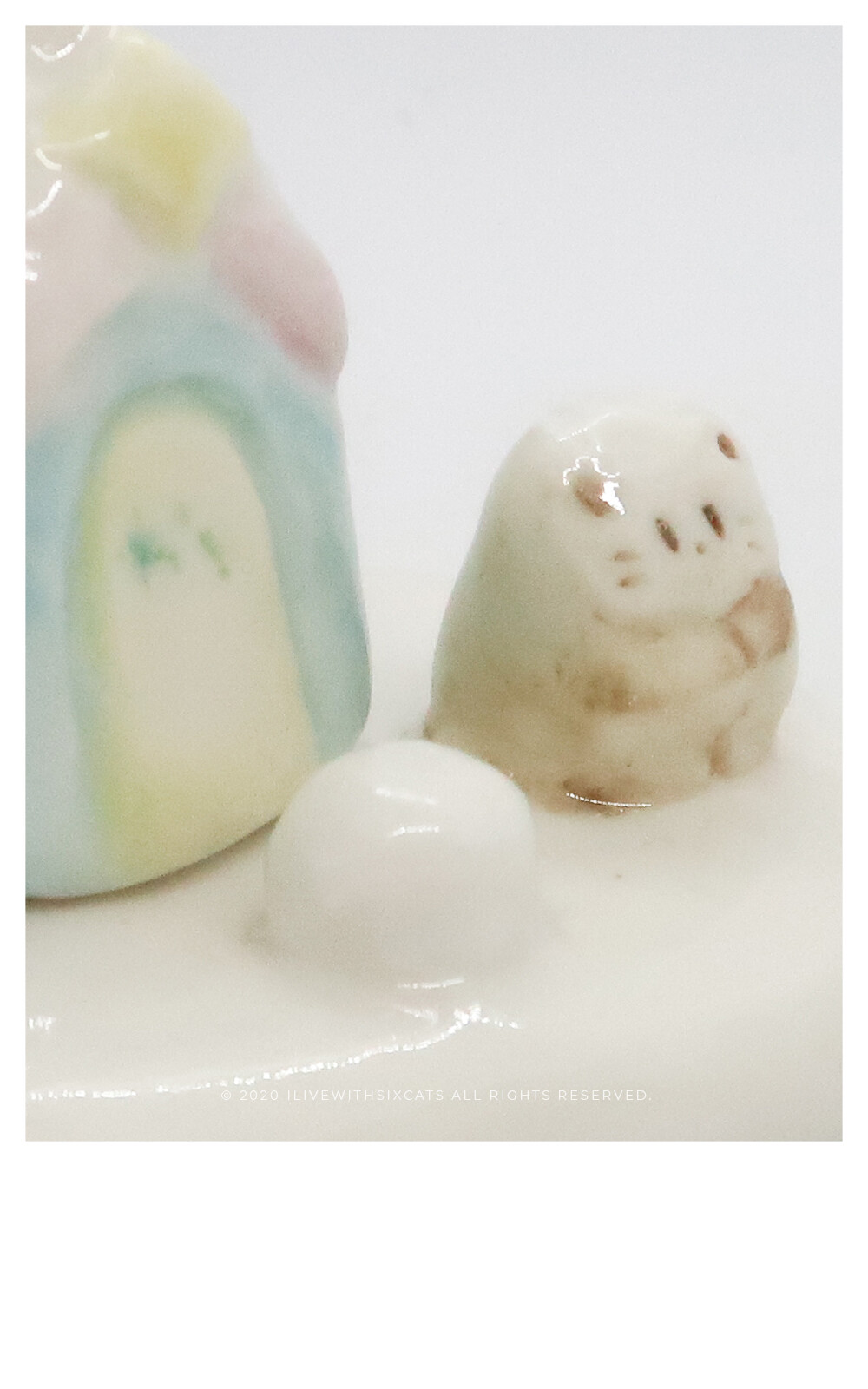 눈송이를 굴려굴려 미니 눈사람을 만들어낸 고양이! 눈을 맞으며 만들었더니 머리에 눈이 소복이 쌓였습니다. 🌨️