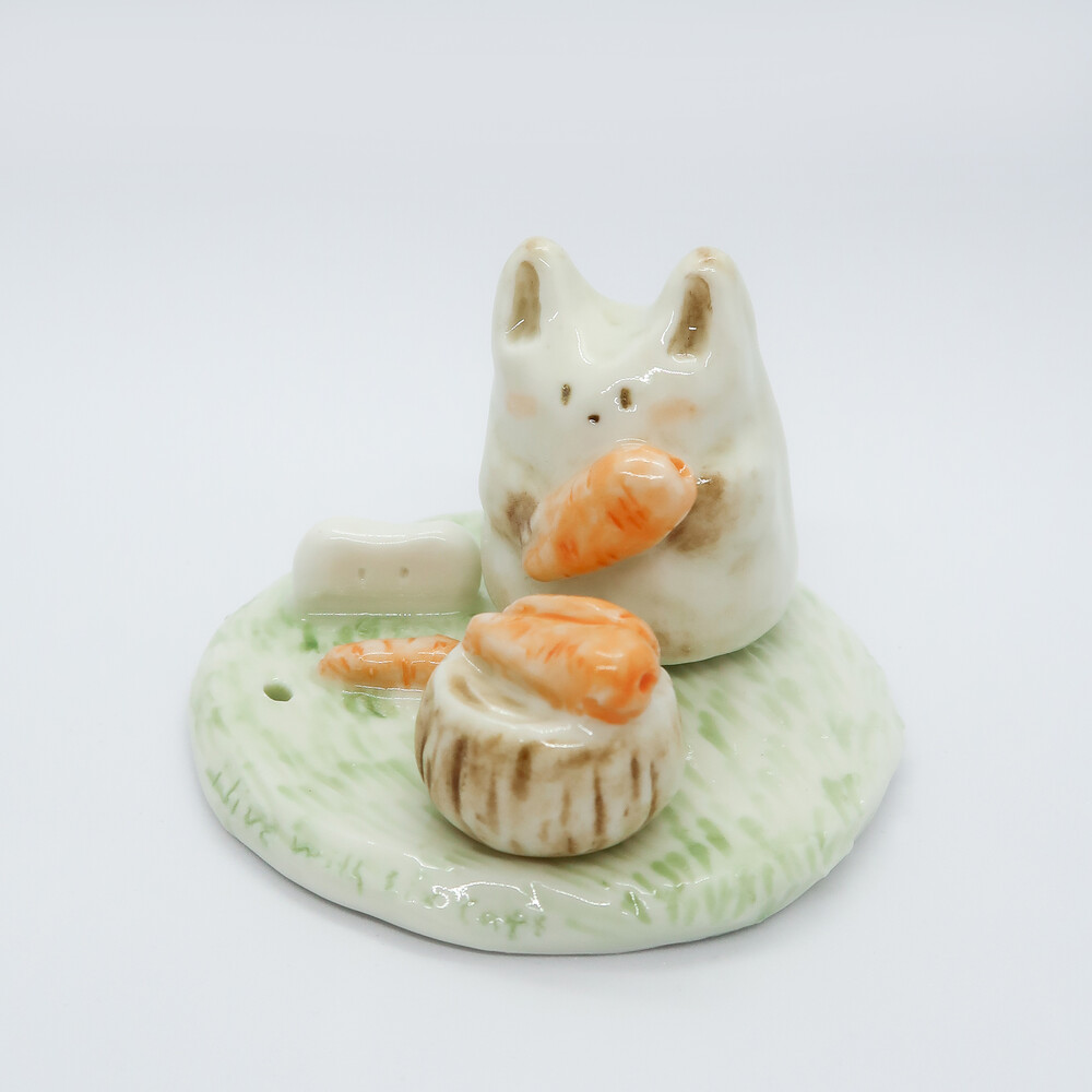 블랭캣이 운영하는 당근 농장에서 당근 수확 체험 중인 토끼를 담은 인센스 홀더예요. 🧑‍🌾