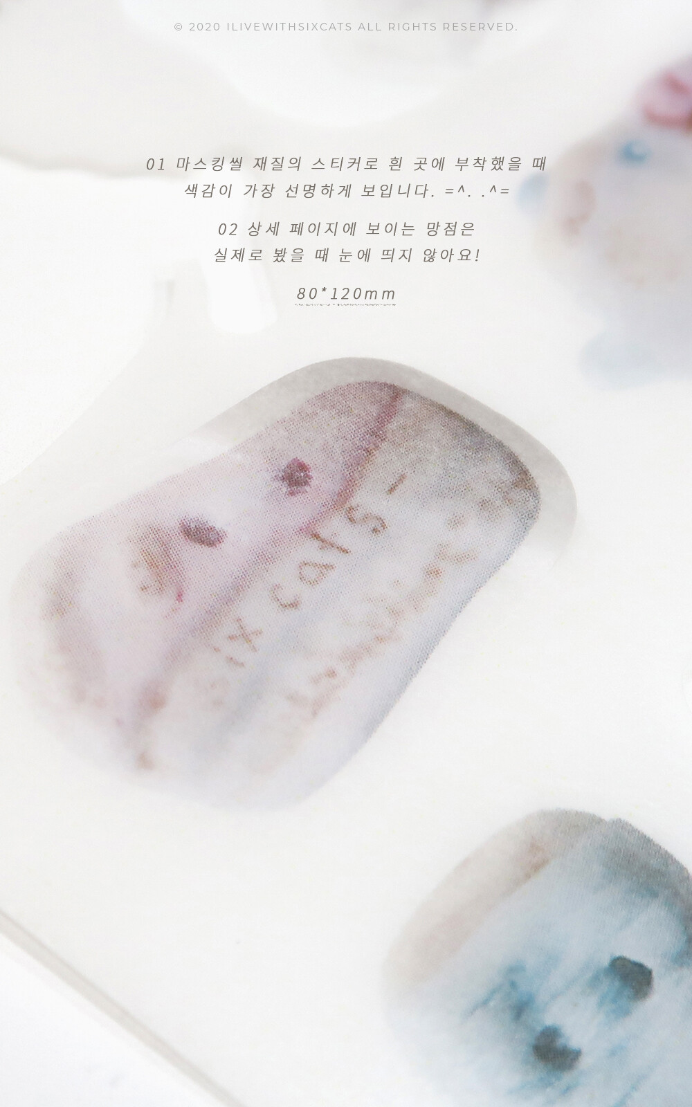 얇은 종이 재질이라 후면이 비칩니다. 흰 곳에 부착했을 때 색감이 가장 선명하게 보여요! =^. .^=