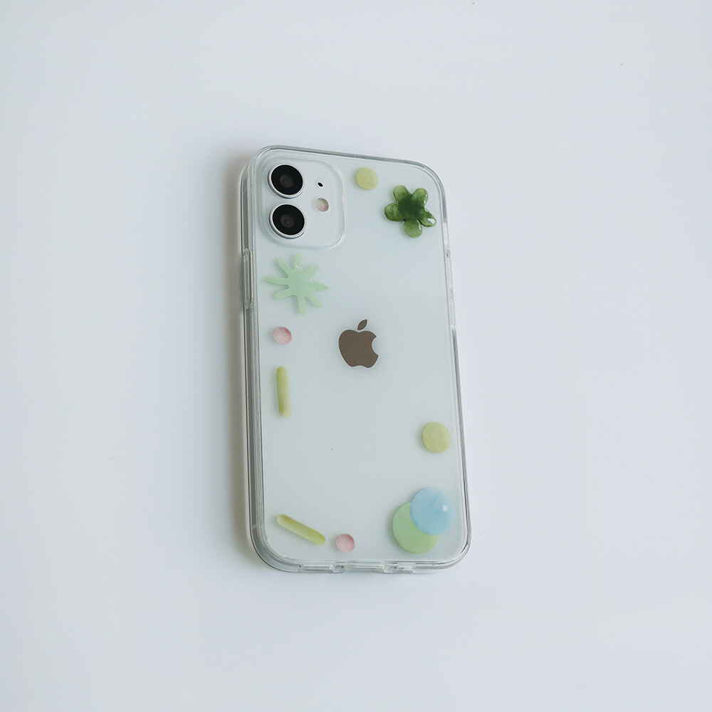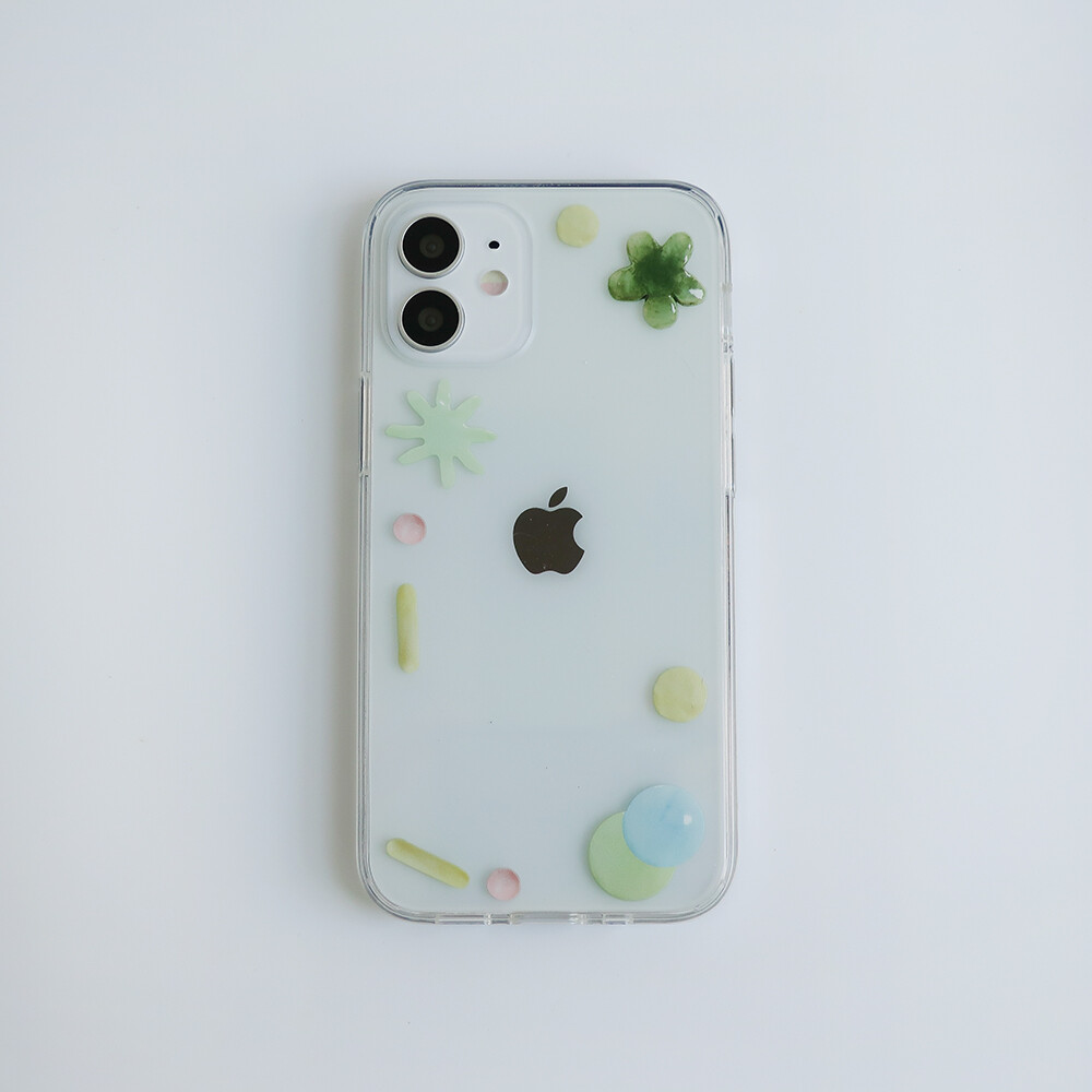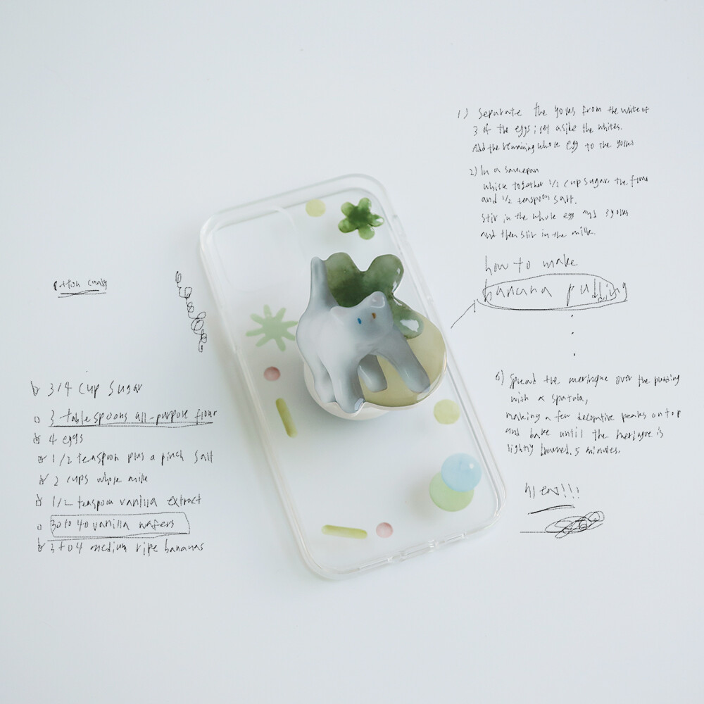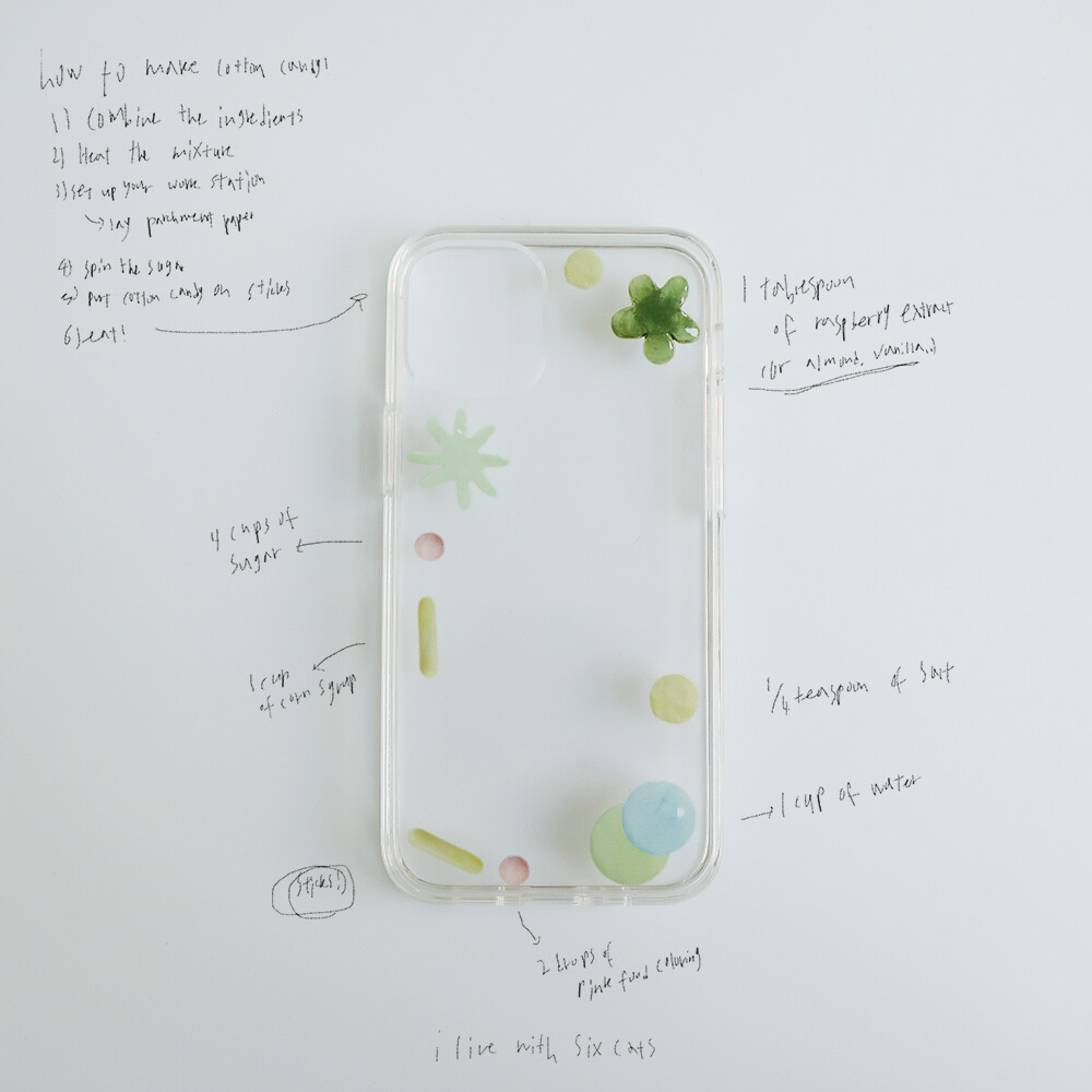 솜사탕이 생각나는 도자기 오브제들을 모아서 만든 젤하드 핸드폰 케이스입니다.