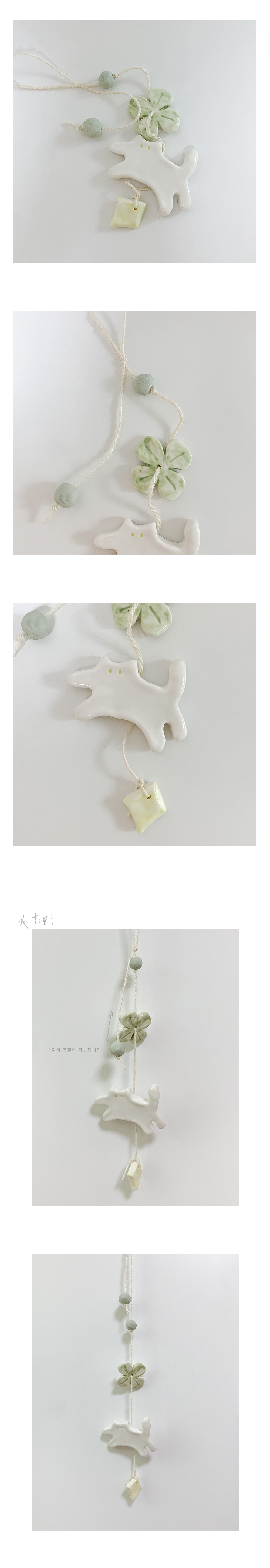 네 잎 클로버를 찾아서 뛰어 다니는 로즈를 담은 모빌이에요. 방 문에 걸어두면 정말 귀엽습니다. 🐱✨