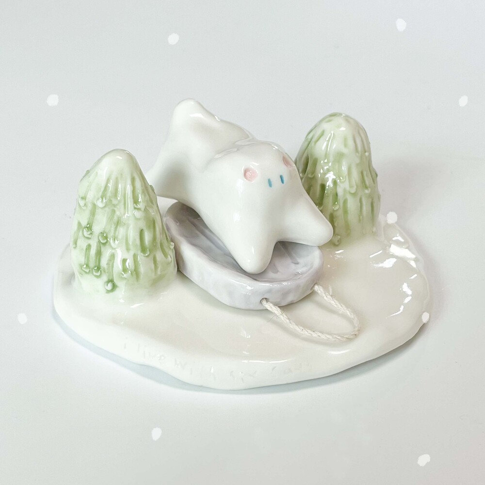 설레는 마음을 담아 소복히 쌓인 눈에서 썰매를 타는 만돈이 오브제를 준비했습니다. 🤍