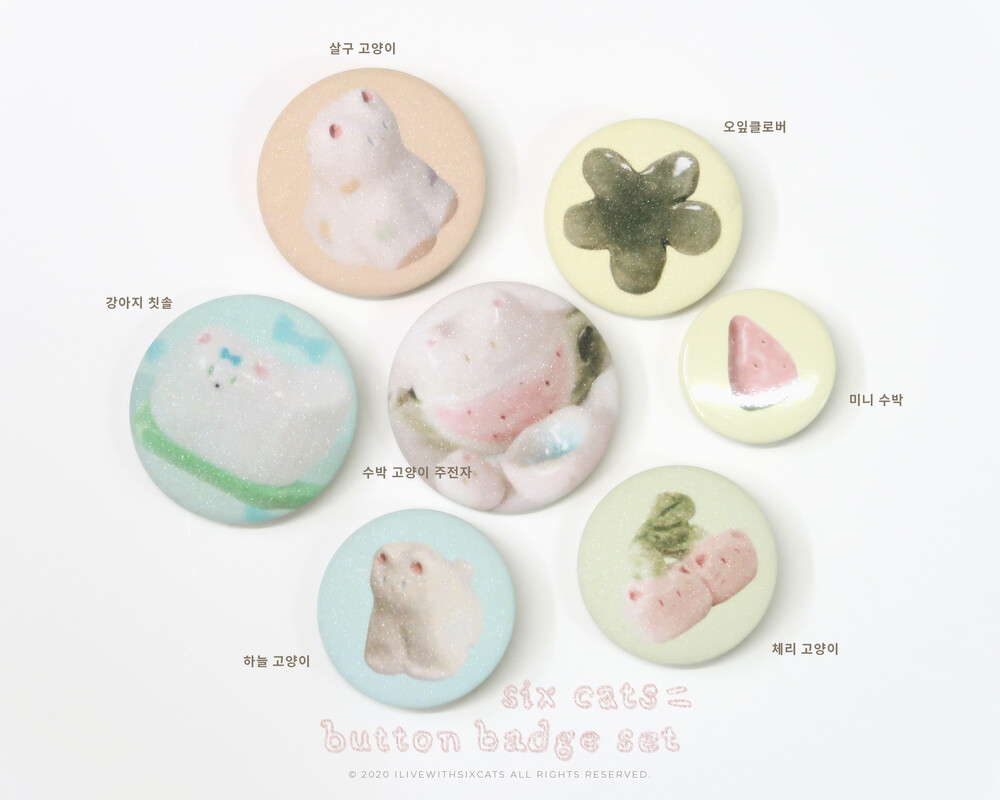 32mm 하늘색 배경 고양이/체리 고양이/오잎클로버