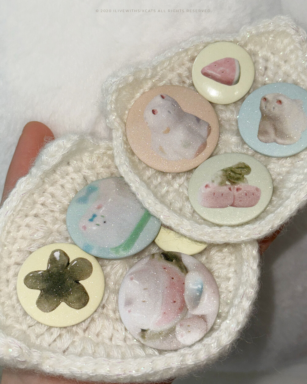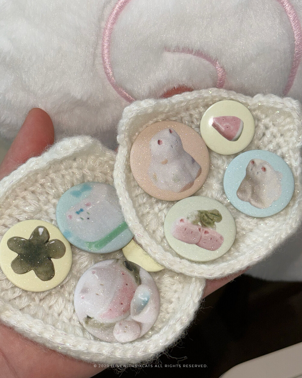 🔎 햇빛, 조명 아래에서 보면 핀배지가 더 반짝입니다! 핸드폰 플래시를 켜서 보아도 좋아요. ‧₊ .:・˚₊