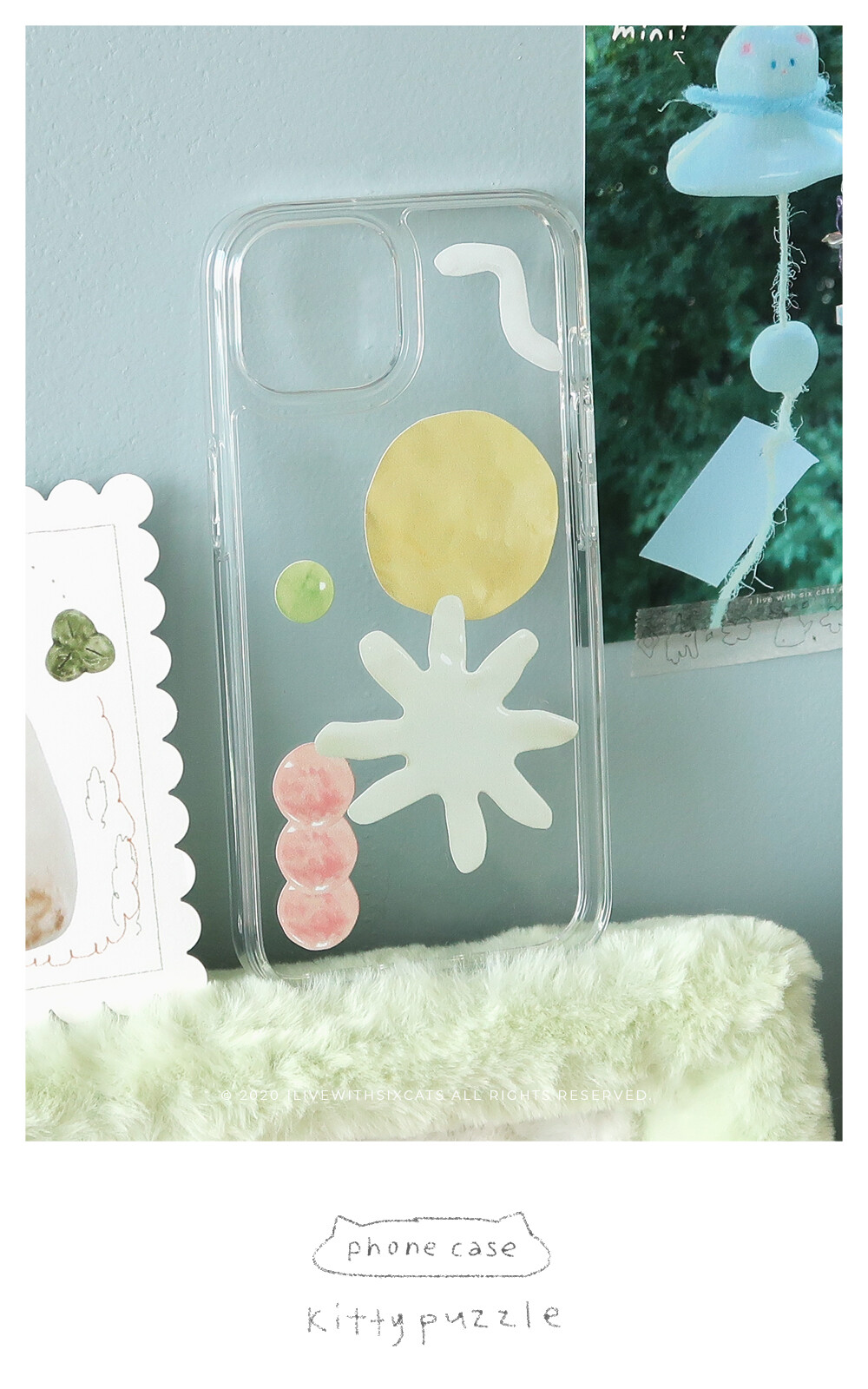 함께 사는 여섯 마리 고양이의 특징을 모은 핸드폰 케이스 [고양이 조각 모음: kitty puzzle]입니다.
