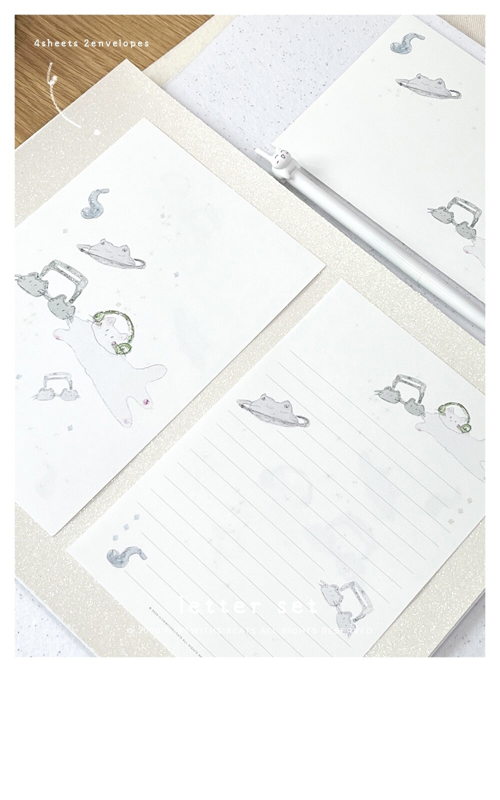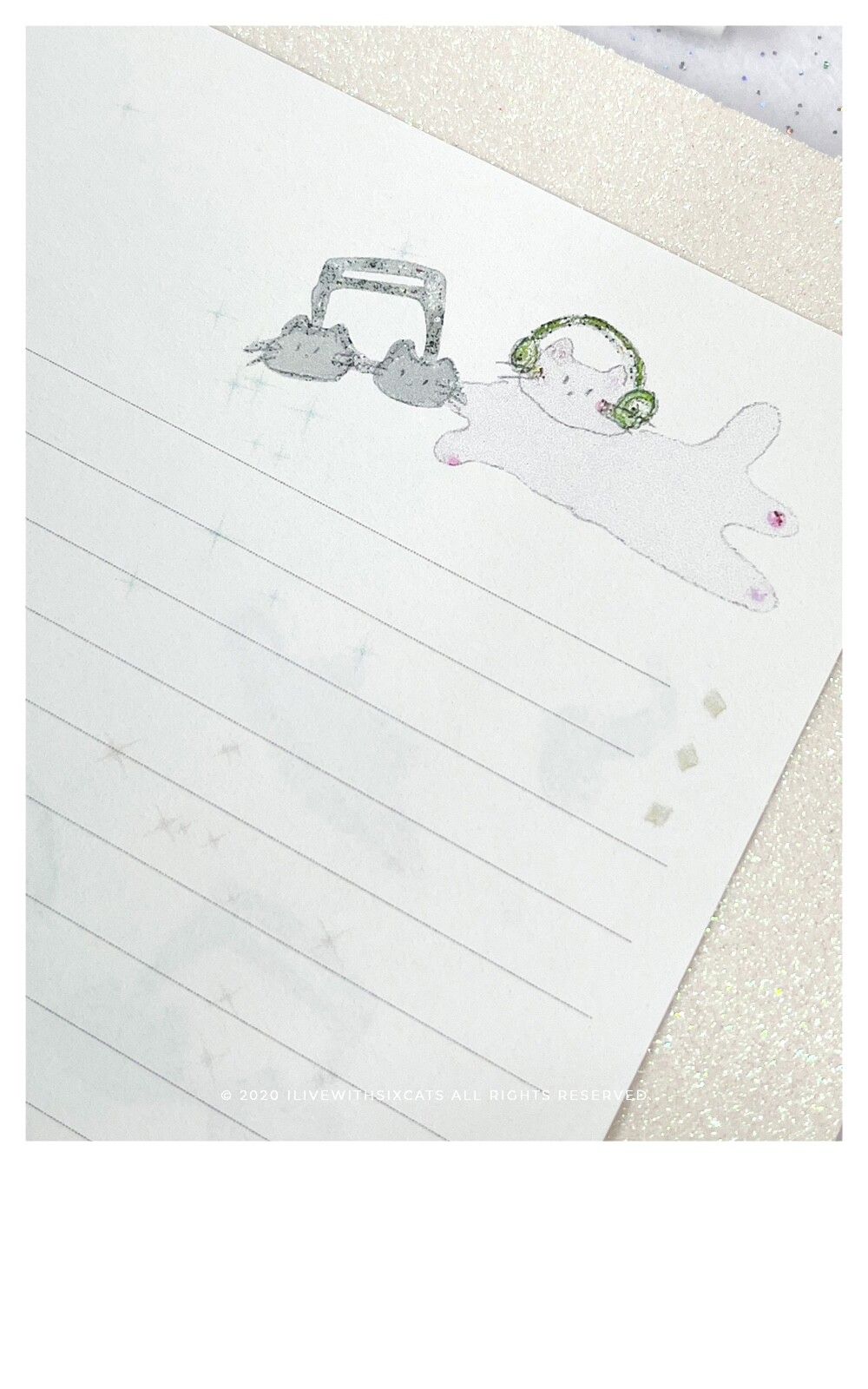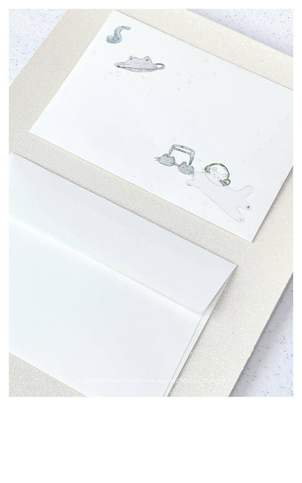 식스캣츠의 손그림을 담은 첫 번째 편지지 세트입니다. 꿈나라를 여행 중인 고양이와 함께 마음을 전해보세요. -`,✎ ˖ ◛ ⋆。˚