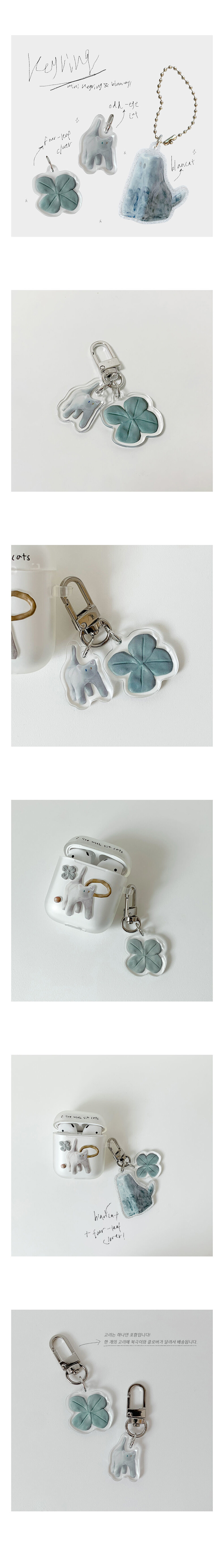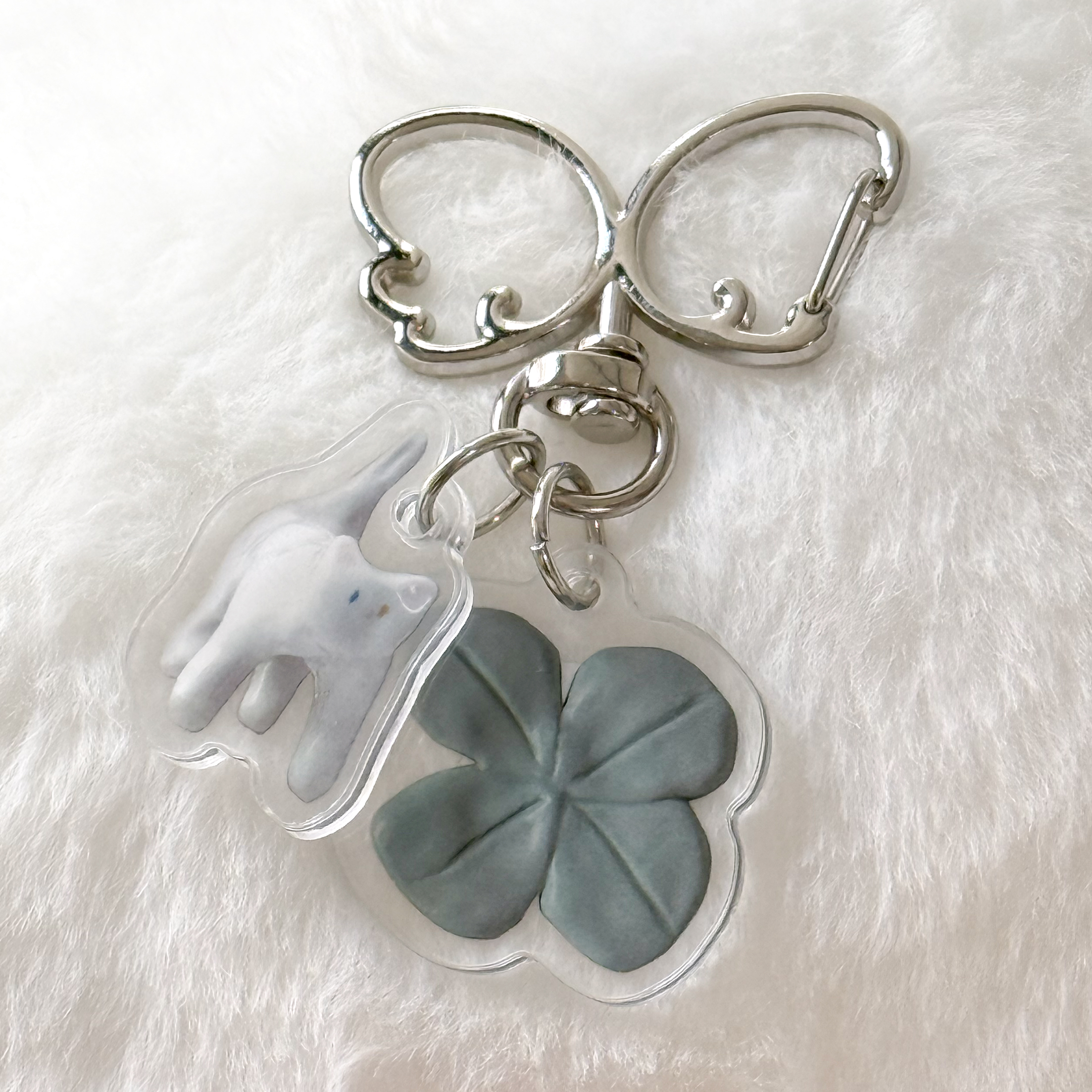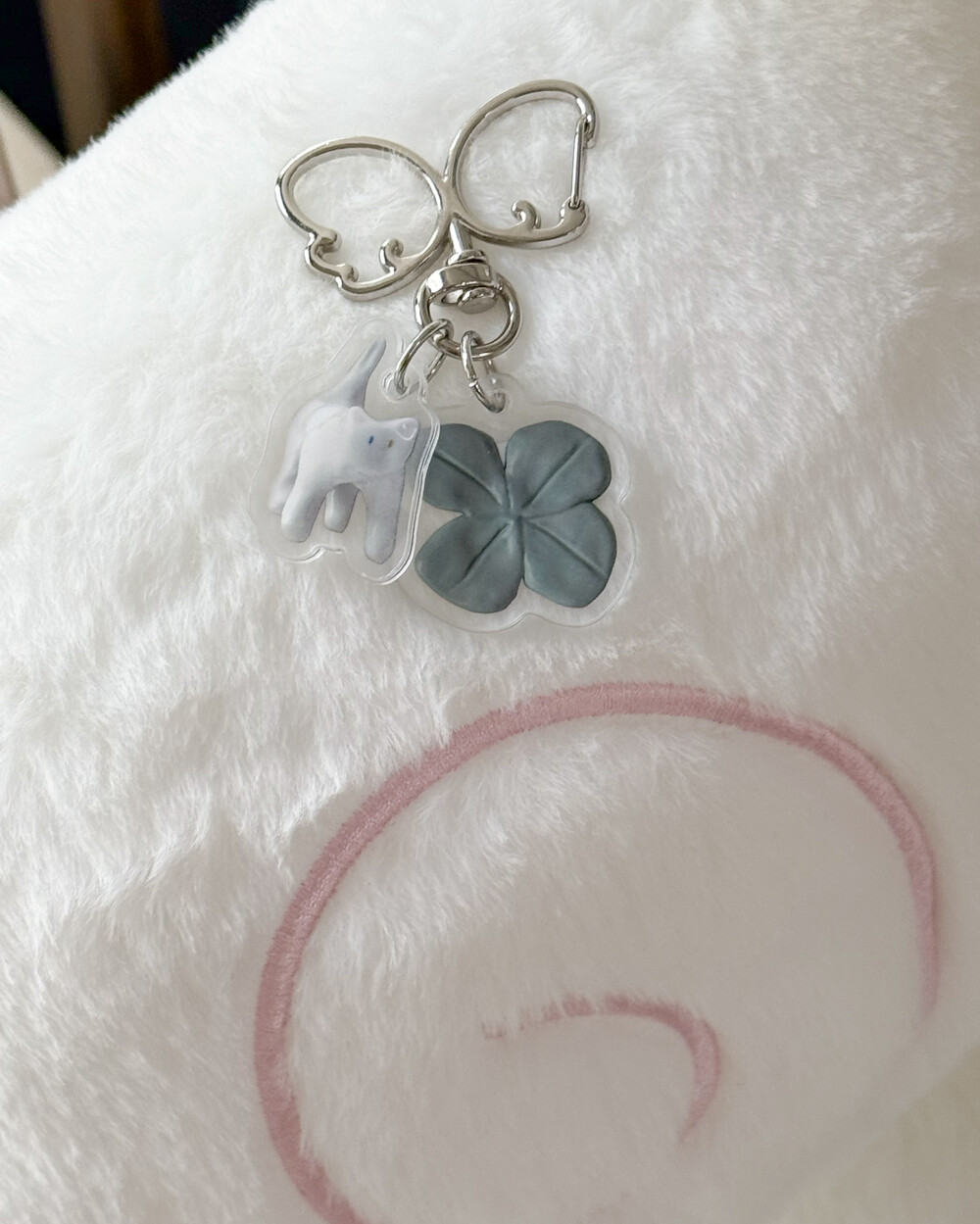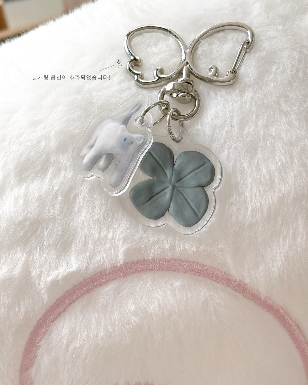 하늘색 눈과 노란색 눈을 가진 북극이와 북극이의 행운의 아이템! 네잎클로버를 담은 미니 키링입니다.