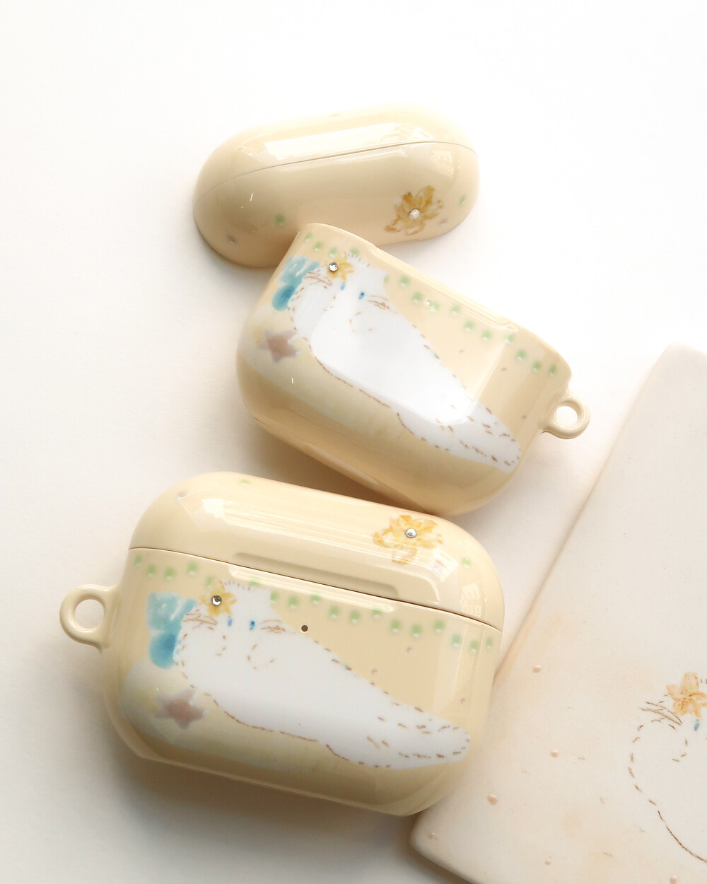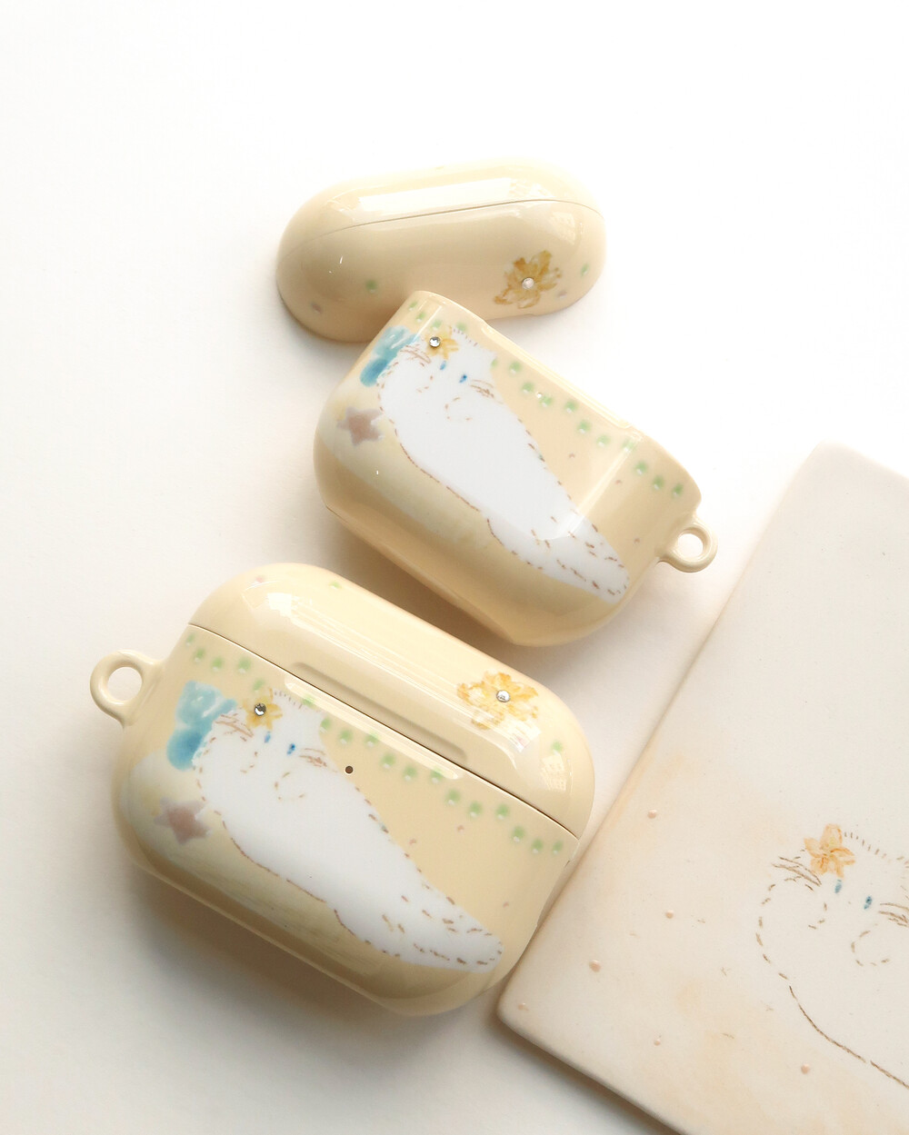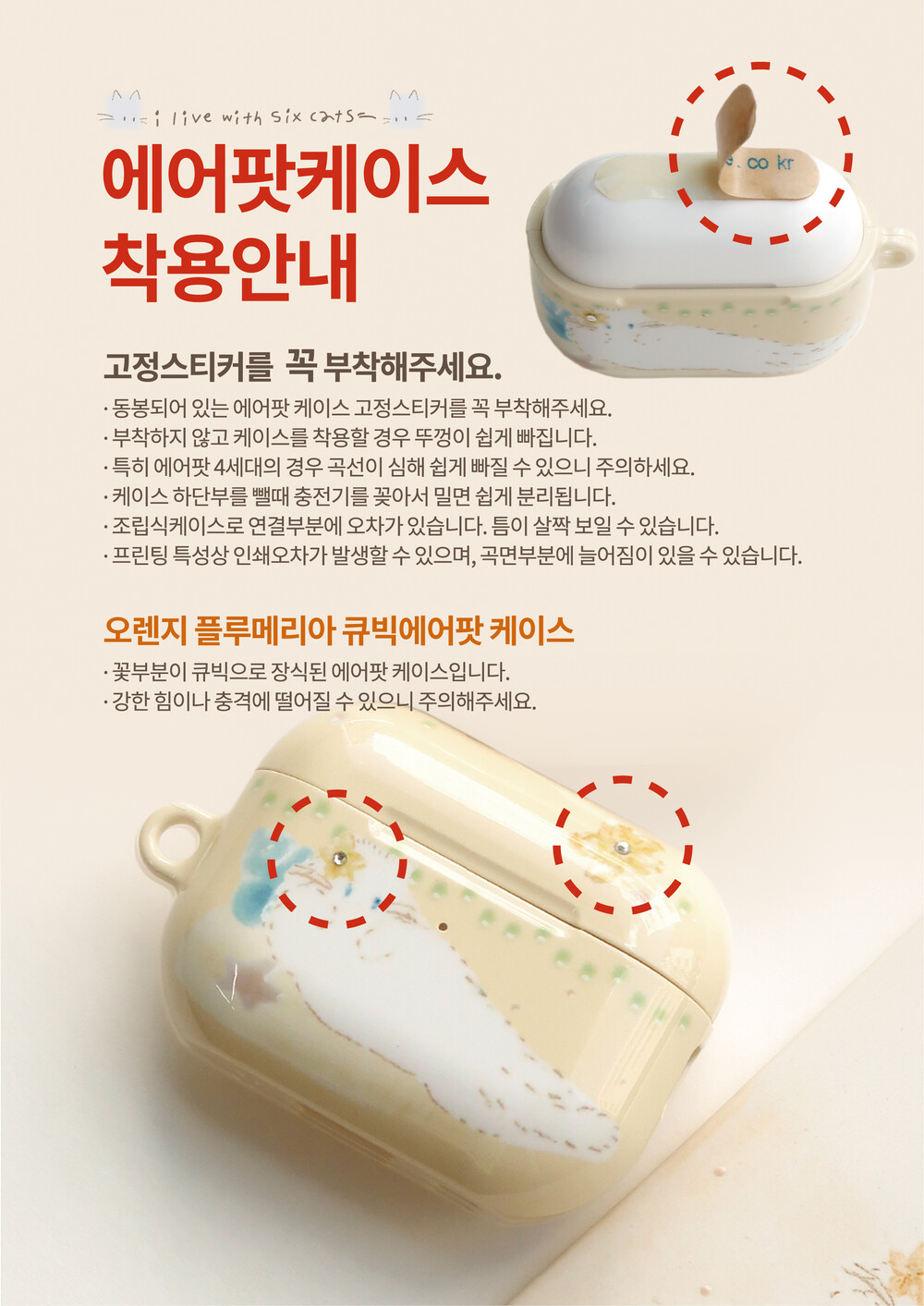 · 동봉된 고정 스티커를 에어팟 기기 상단부에 부착하여 케이스 뚜껑을 고정해 주세요.