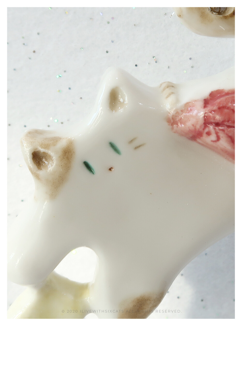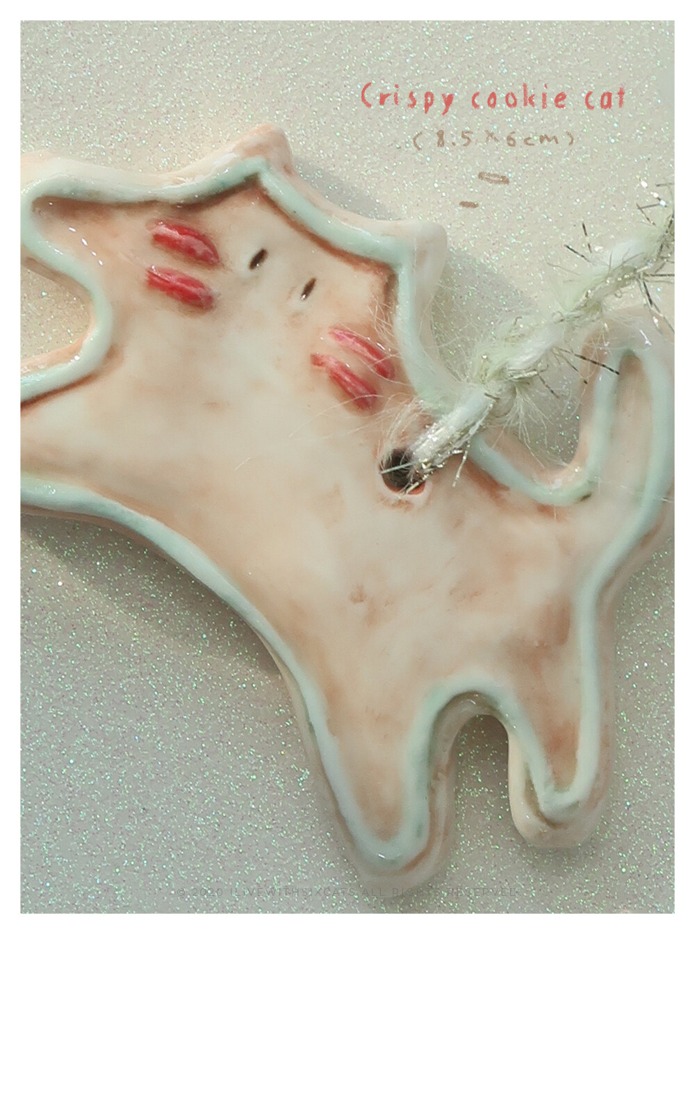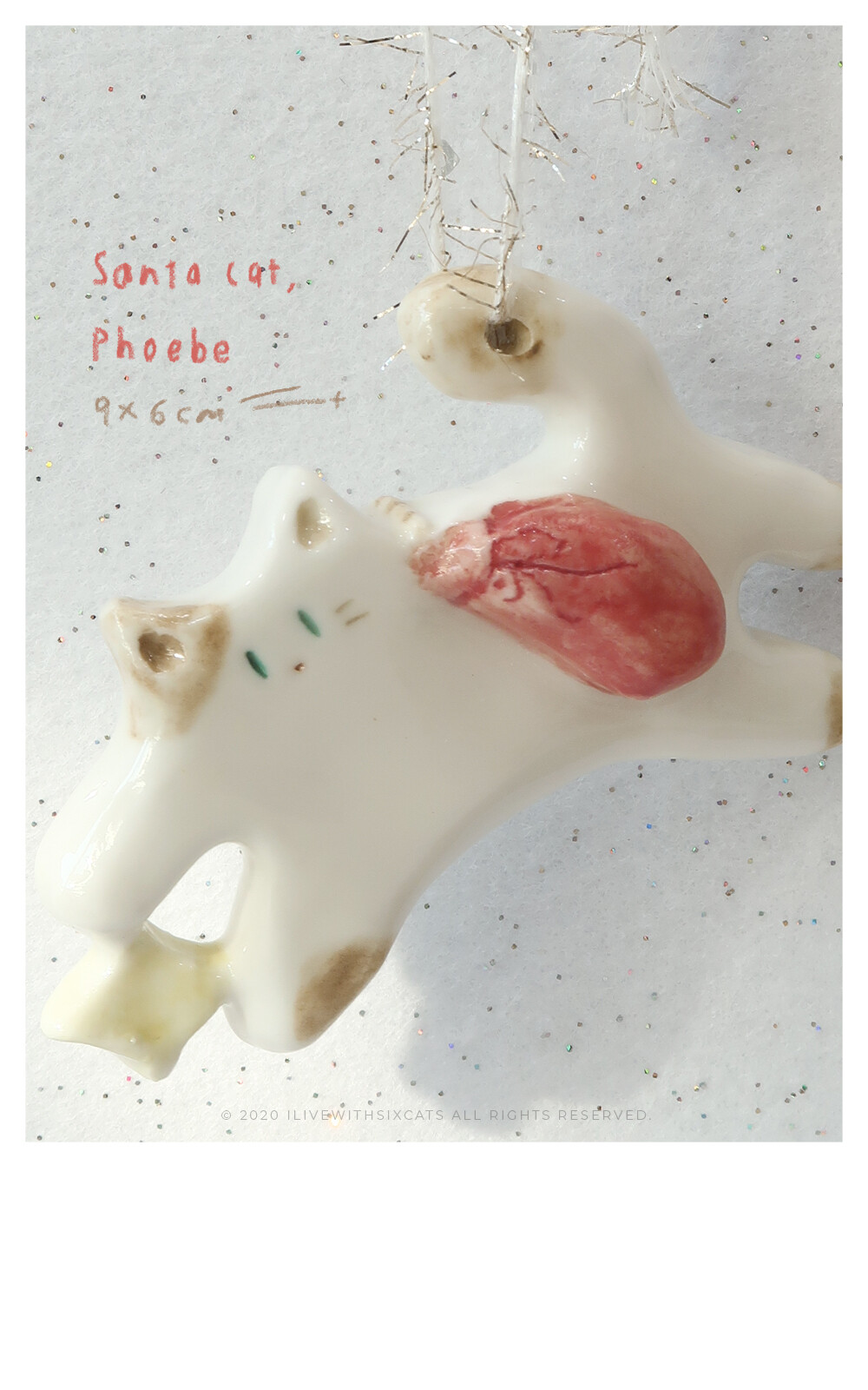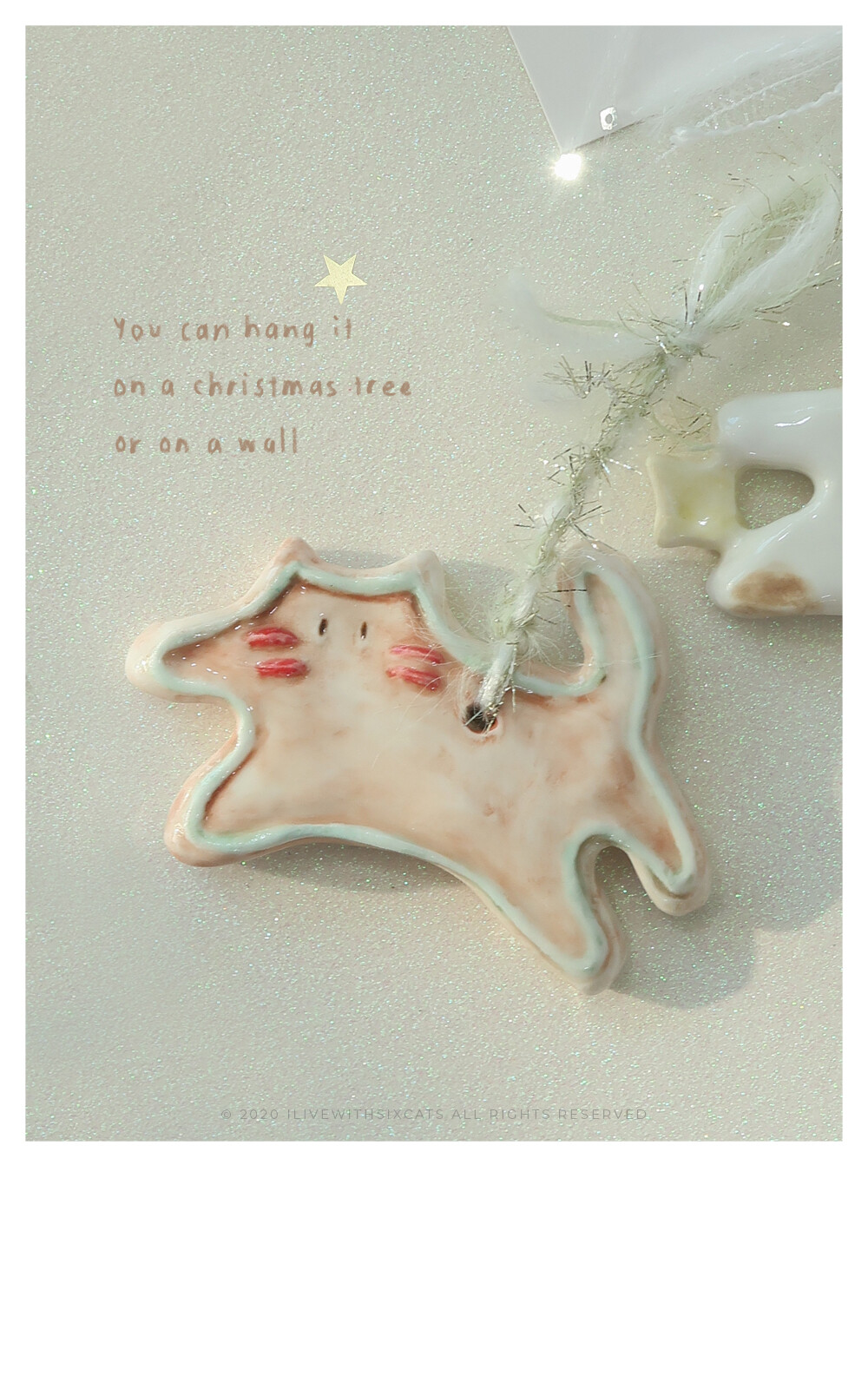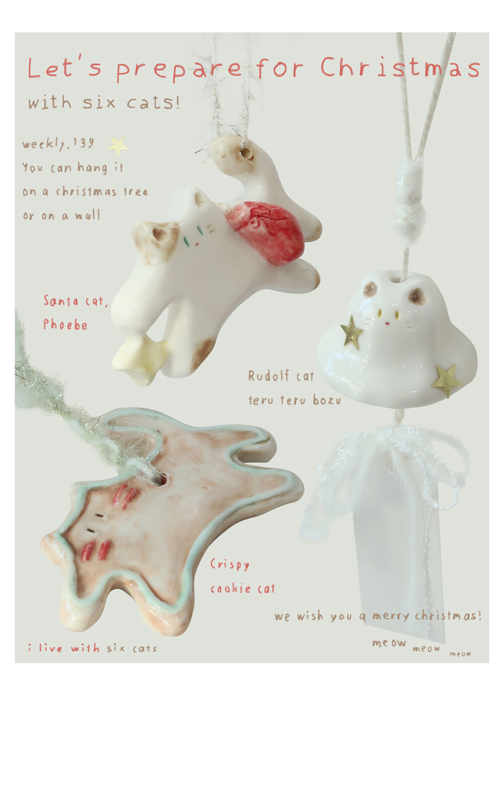 크리스마스 준비를 함께하면 좋을 것 같아서 크리스마스 도자기를 빠르게 구워왔습니다! 🤶🏻 산타 고양이 피비, 바삭 쿠키 고양이, 루돌프 고양이 테루테루보즈까지 세 개의 오너먼트를 준비했어요. ♡