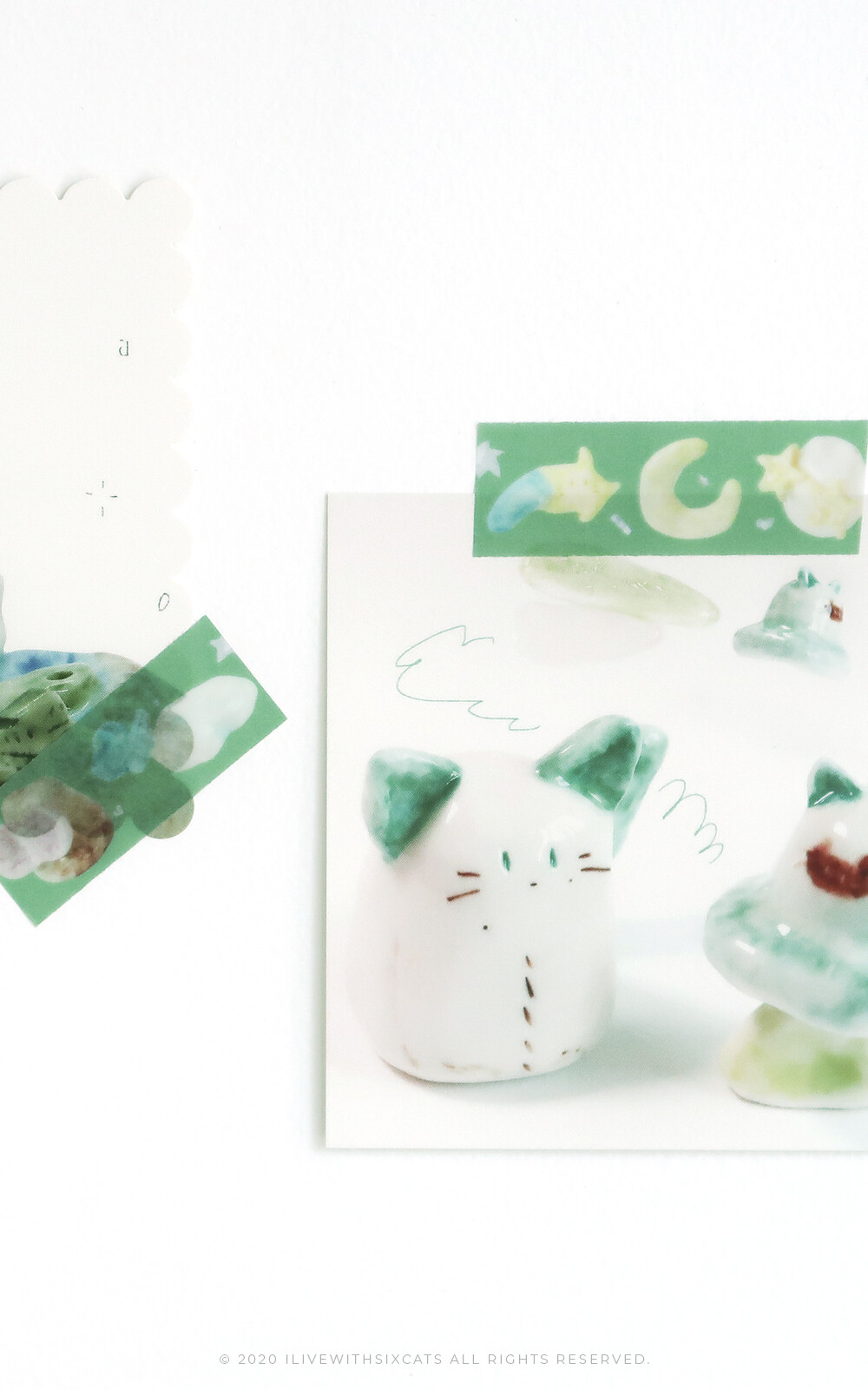 조용히 분주한 식스캣츠 요정마을을 담은 펄 마스킹 테이프입니다. =^. .^=
