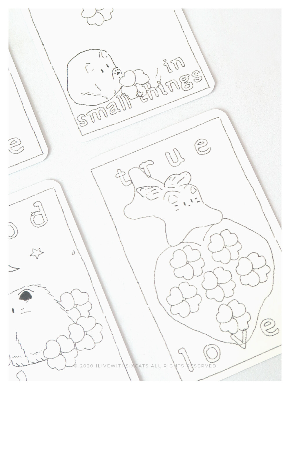 여섯 고양이 ‘로즈, 루비, 북극, 만돈, 겨울, 몽’의 응원을 담은 행운 카드예요!