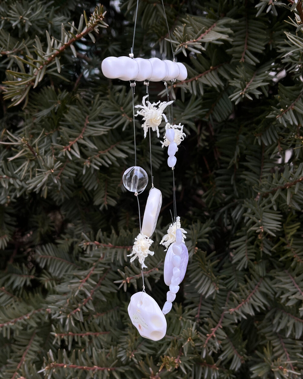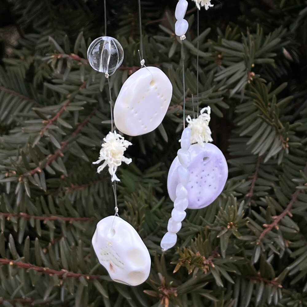 [만돈이의 첫눈 ! ! !]을 떠올리며 만든 보라색 눈 펜던트, [트리 만들기 !]에서 가져온 몽이의 트리 펜던트, [네잎클로버를 찾아라 !]를 생각하며 만든 별 펜던트!