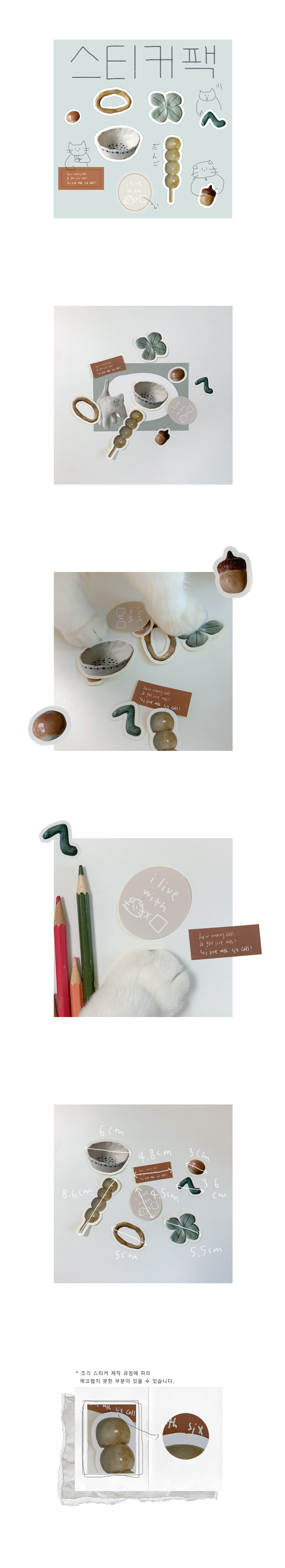 6개의 도자기 조각 스티커와 2개의 드로잉 조각 스티커로 구성되어 있습니다.