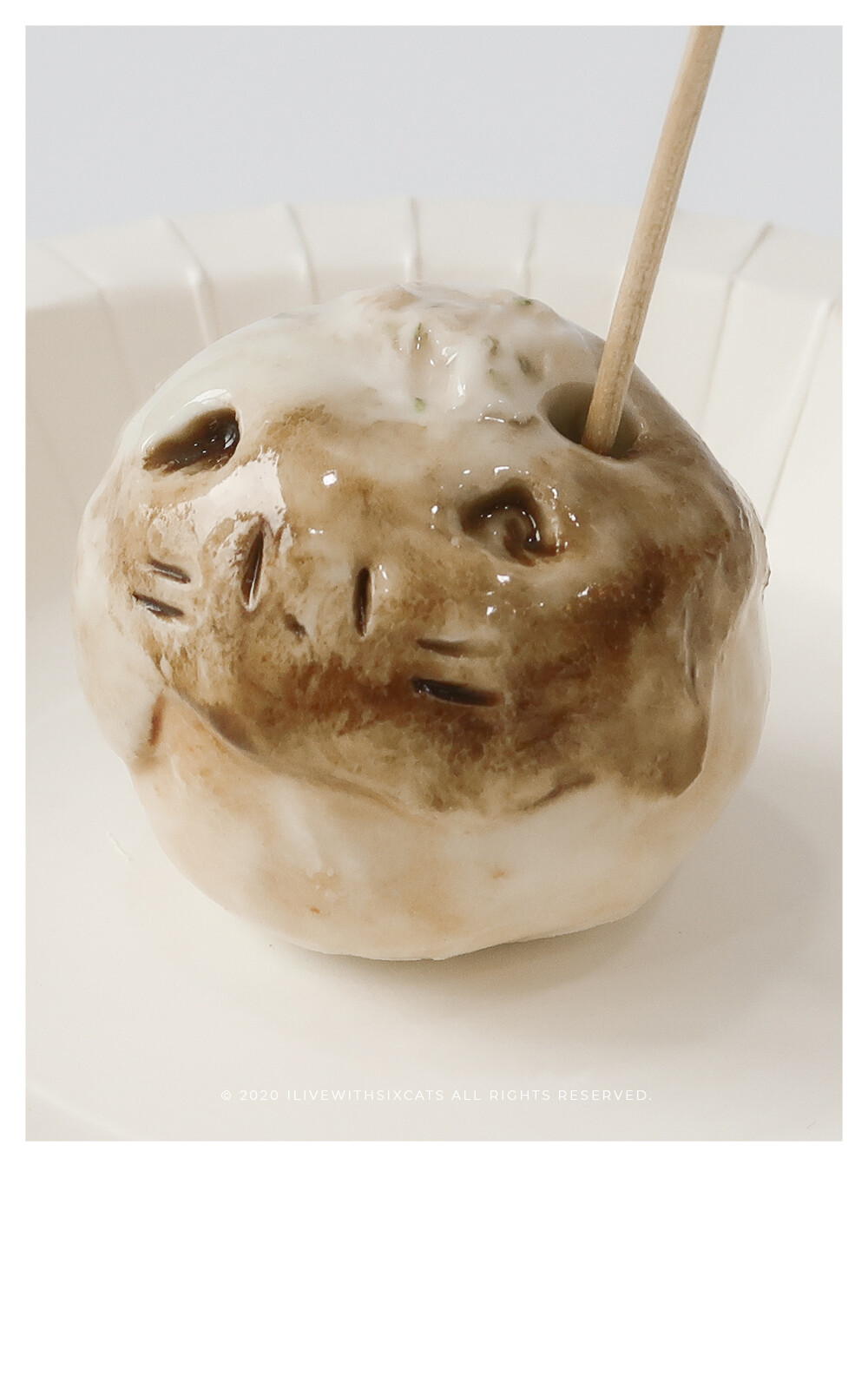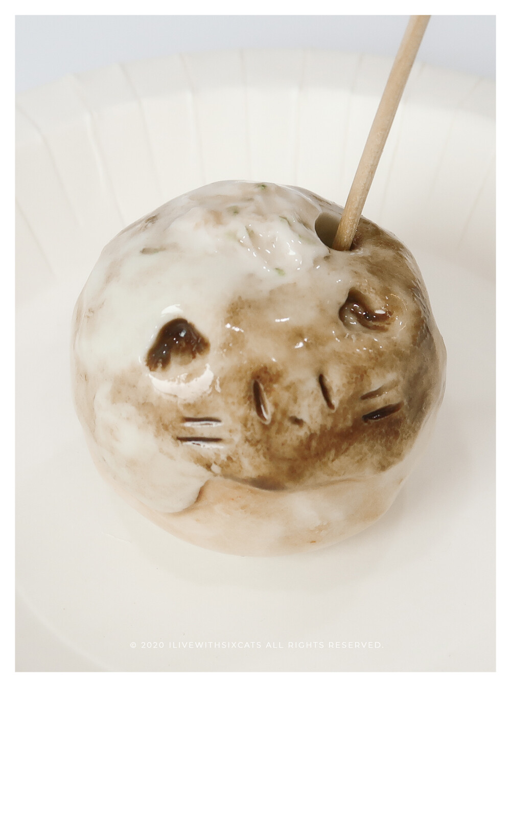 넷째 고양이 만돈이는 다른 고양이들보다 커다란 타코냥끼를 만들었습니다.