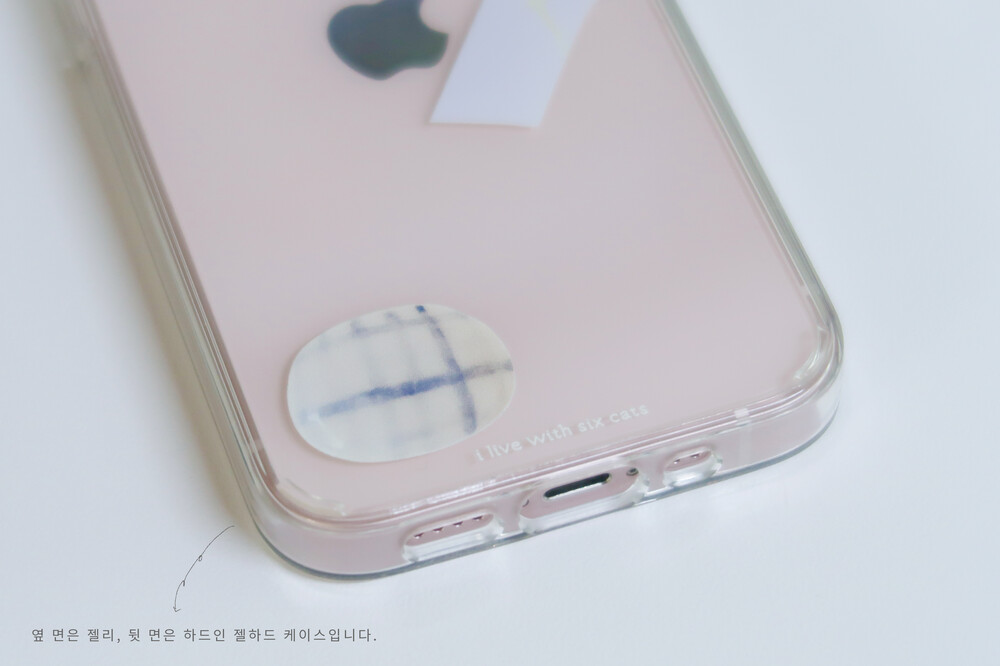 젤하드 핸드폰 케이스로 뒷면은 하드(아크릴), 옆면은 단단한 젤리 재질로 되어 있어 튼튼하고 황변현상이 적습니다.
