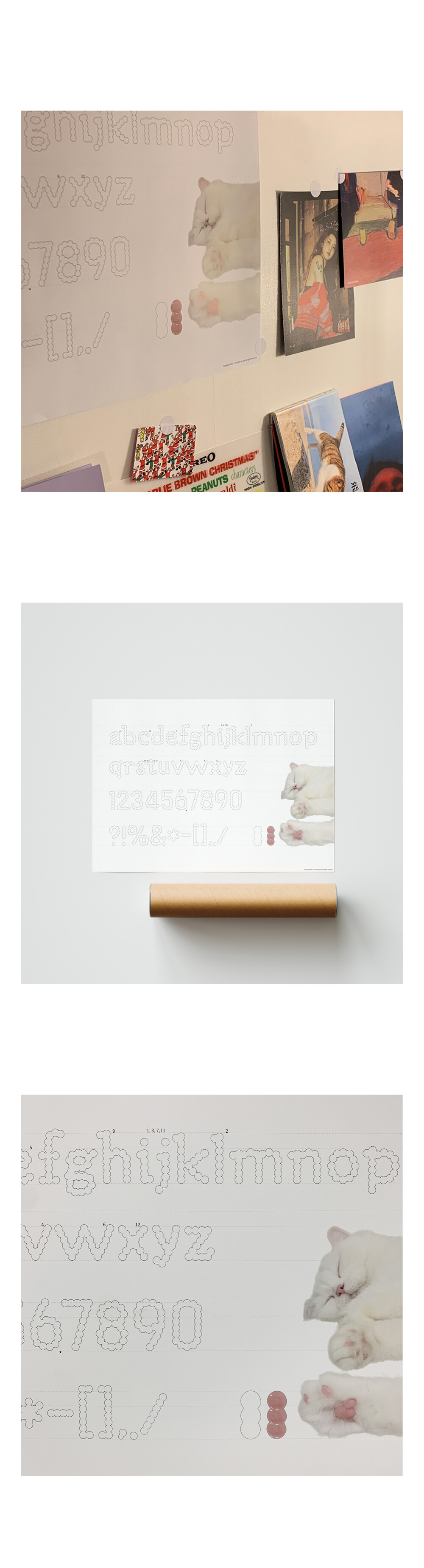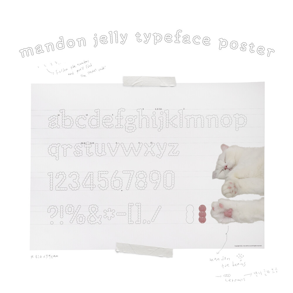 만돈이의 젤리의 형상에서 모티브를 얻어, i live with six cats의 만돈 젤리체를 만들었어요. 그 기념으로 포스터를 제작했습니다.