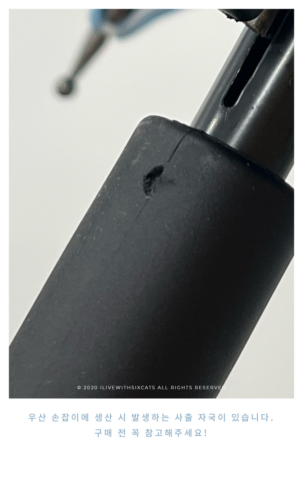 ⁞ 우산 꼭지 부분 마감 형태 및 실로 재봉된 우산 특성 상 폭우 시 쇠로 된 고리의 틈 혹은 실 사이로 물이 흐를 수 있습니다. (고리를 우산대에 딱 맞게 만들면 우산이 긁히기 때문에 여유를 줘서 만들고 있습니다.ᐟ)