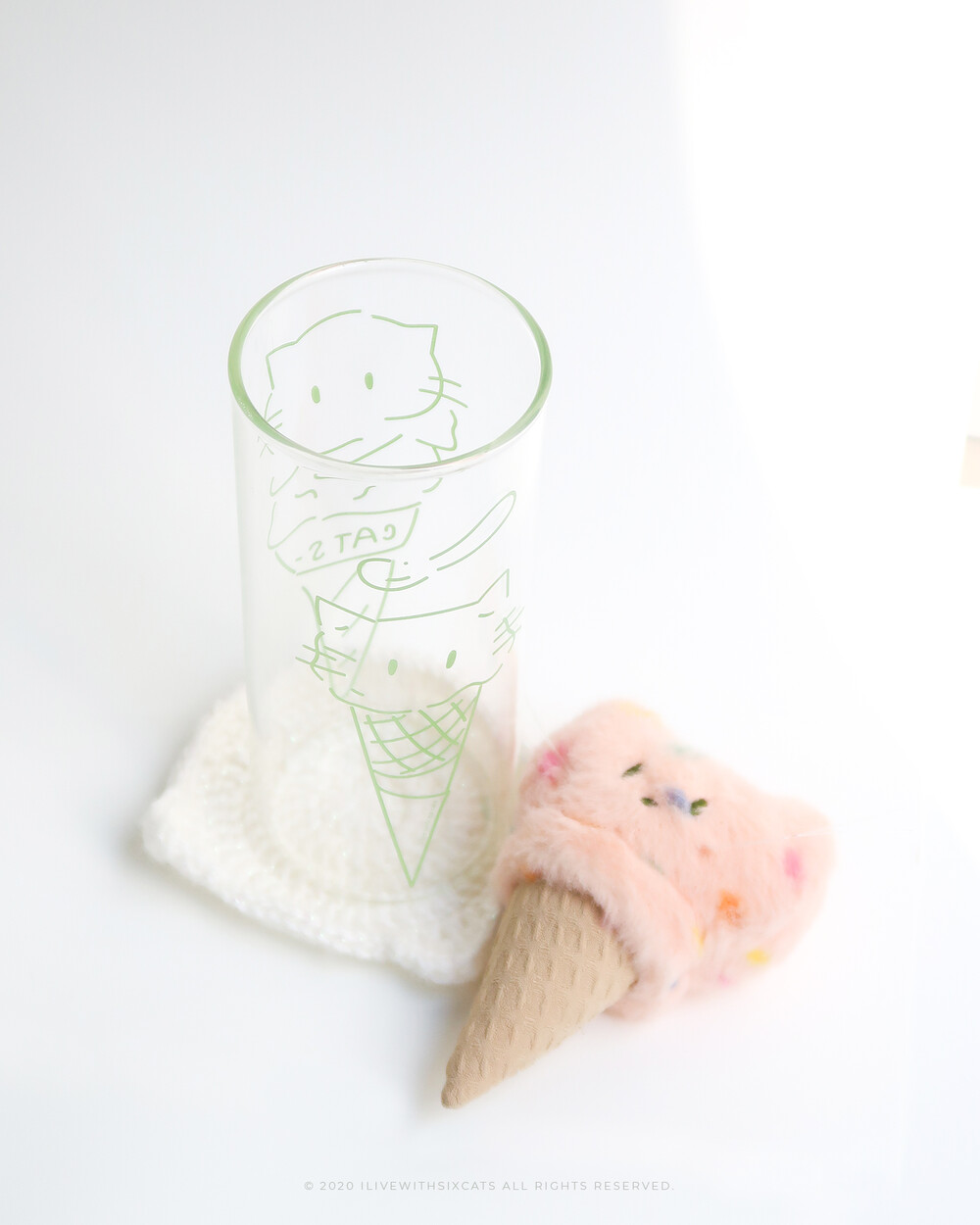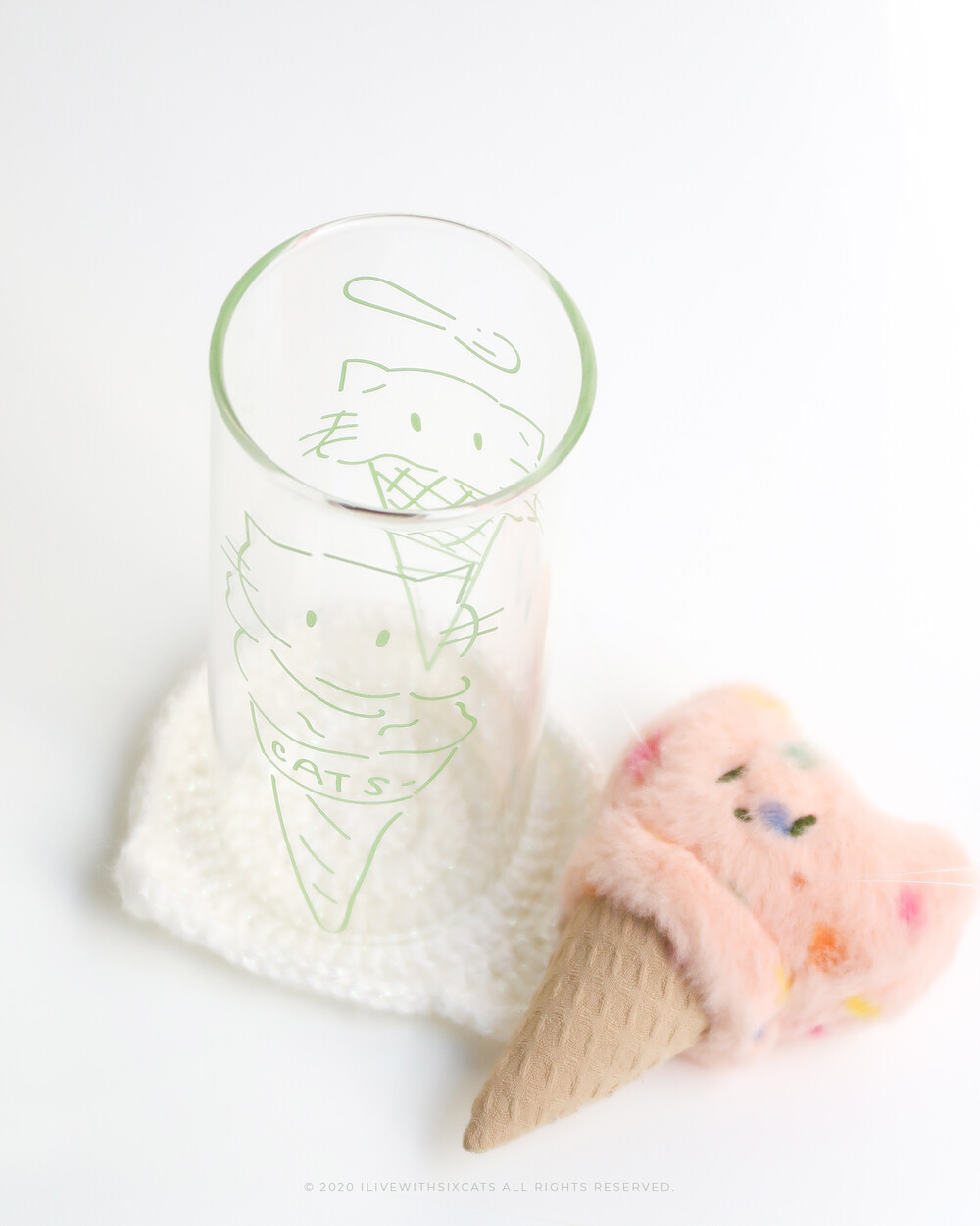 [430ml 내열 유리컵] 수박맛 고양이 아이스크림