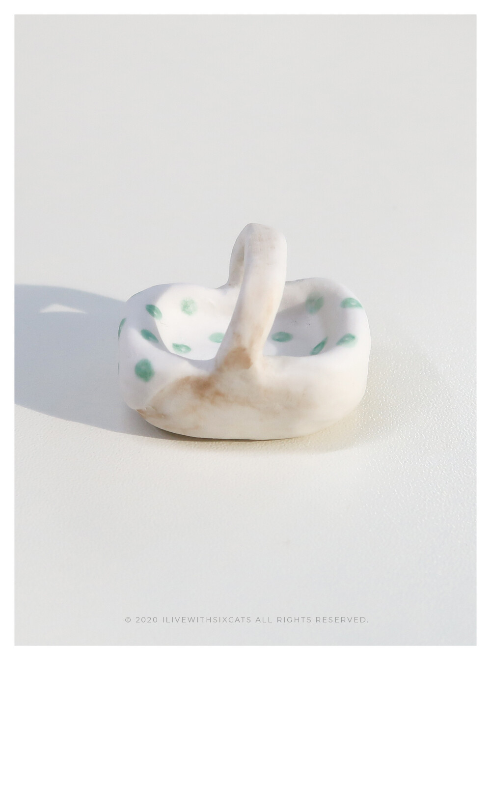 주간도자기 책을 보다가 잠에 들랑말랑…! 포근한 낮시간의 몽이를 담았습니다. 💤 열매가 그려진 바구니에는 비즈 반지처럼 작고 반짝이는 물건을 넣어두면 귀여울 것 같아요. ⠂⠂⠄⠄⠂☆